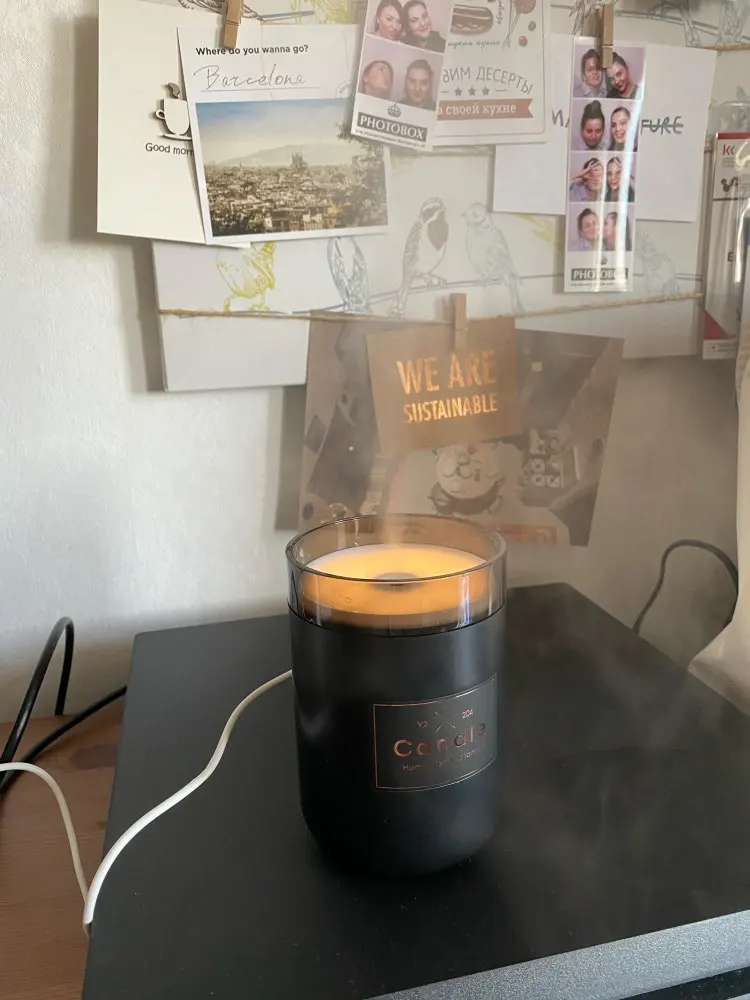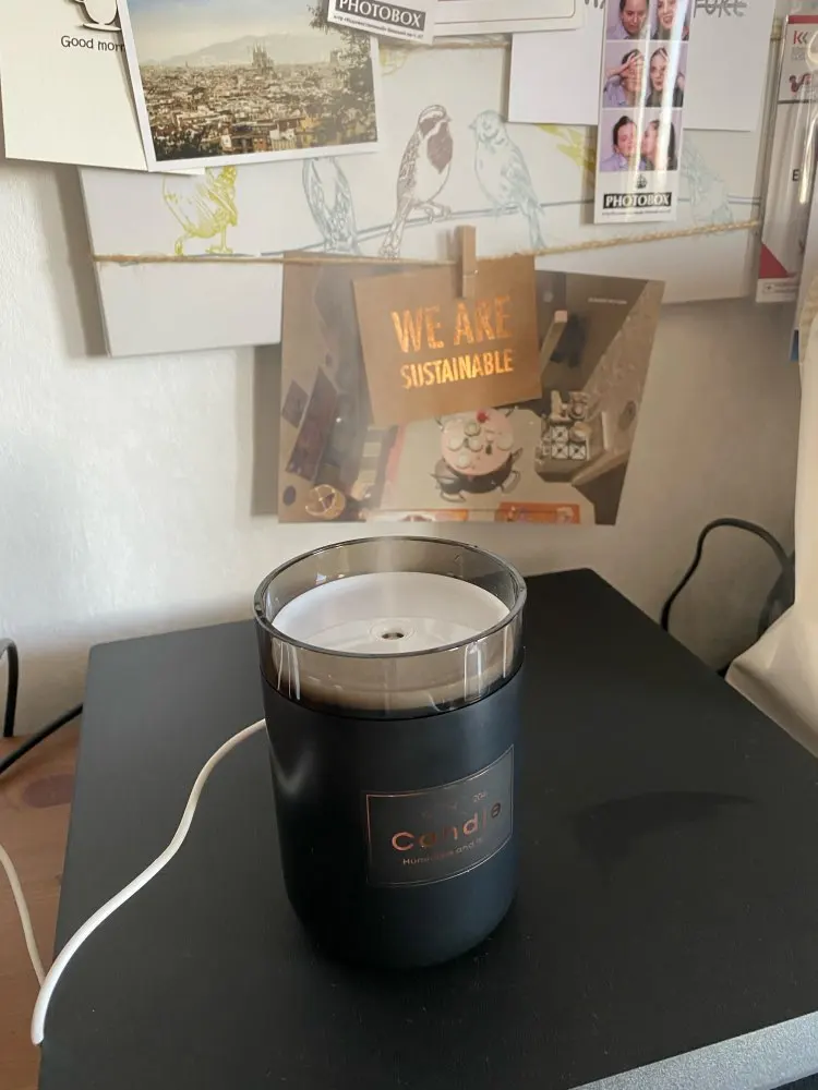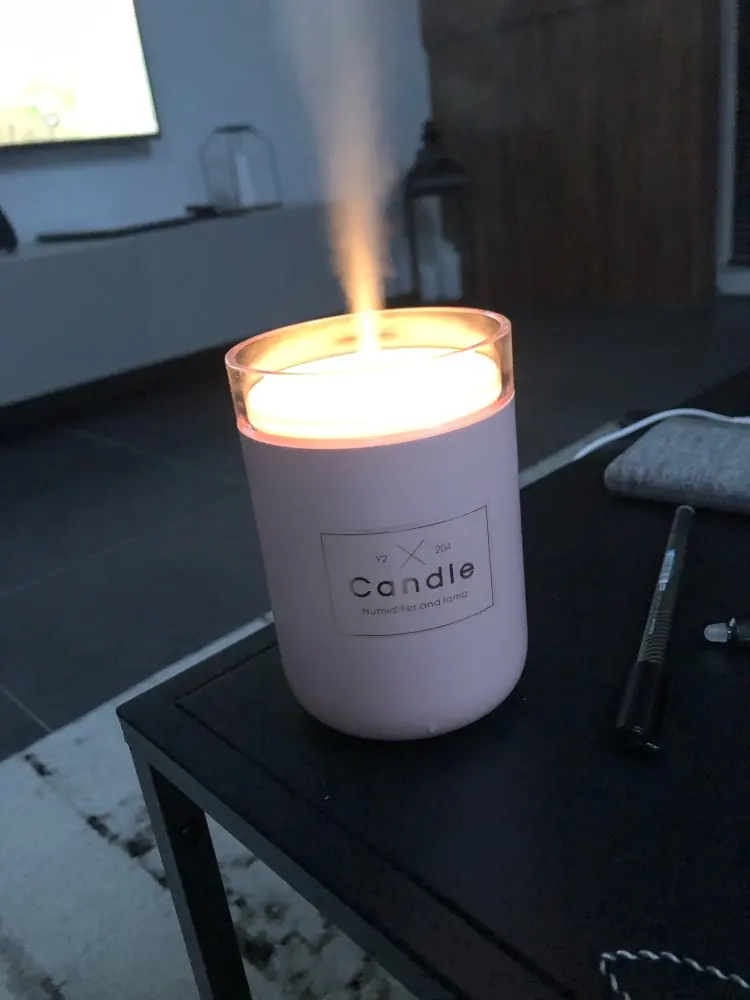 Candle Shaped Ultrasonic Air Humidifier Item Type: Air Humidifier Material: ABS, PP Size: 8 x 8 x 13.9 cm / 3.1 x 3.1 x 5.5 inch Capacity: 280 ml / 9.47 oz Voltage: DC 5 V Power: 2 W Package Includes: Air Humidifier, USB Cable, User Manual 000100002033_5610_12_15_O1CN011JkGepg8zsA3MOk_!!2438921066 Information: product: USB Air Humidifier Candle Romantic Light Material: ABS+PP Water tank: 280ML Size: 80*80*139mm Colour: Black, Pink, Green Power: 1.5-2W Voltage: DC5V Features: 1.Romantic Color Light 2. Humidifier with 4 hours timer, light 1 hours timer 3, Small size large capacity 280ML last work 5-8 hours 4, Exquisite luxury outlook 5, heavy mist with ultra-quiet design Connect With: 1.phone charger 2.power bank 3.laptop USB port NOTE:  1, Only 2-3 drops of water-soluble essential oil can be added to a cup of water, please clean the water tank each time after each use. 2, High-concentration oil-based essential oils that are insoluble in water must not be added and used, as they will clog the filter and prevent spraying. This is very important! 00035615_O1CN011JkGepg8zsA3MOk_!!2438921066
