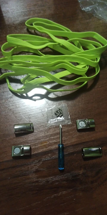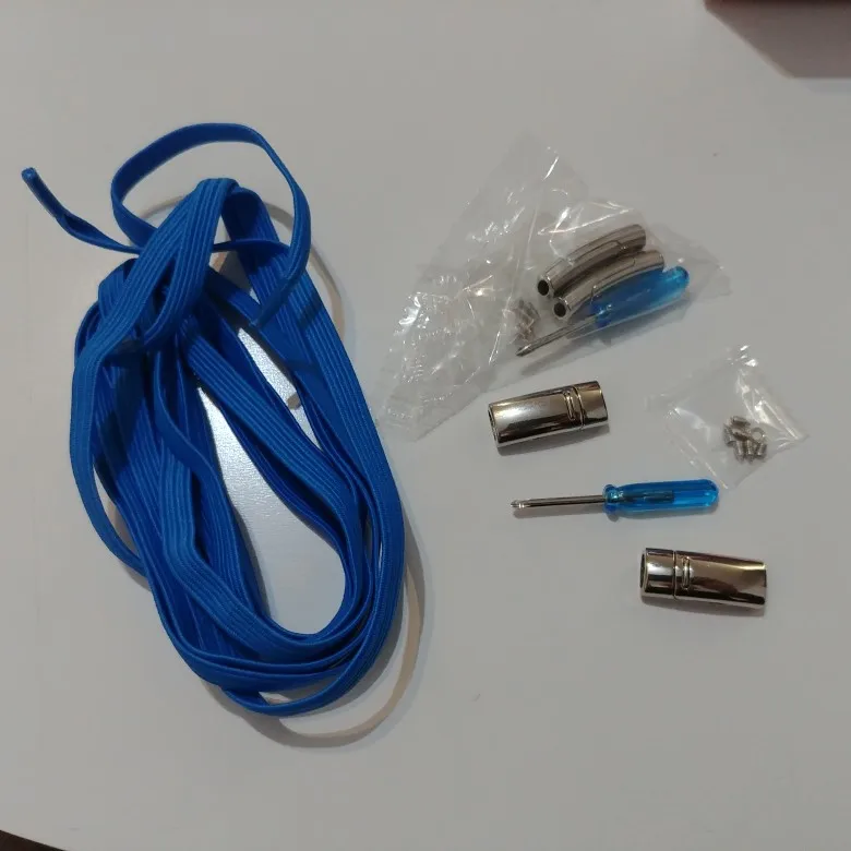 The description and photos of the store of the shoelaces are fully consistent. Included screwdriver and screws. It stretches well.