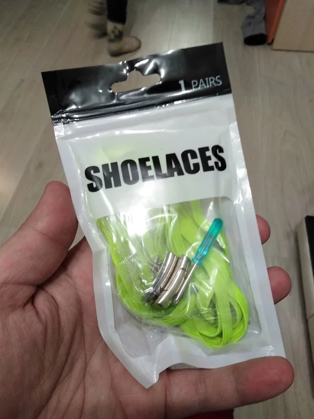 The product corresponds, its money is worth. Yes, this is a rubber band from the panties, I knew it, by the way, the shoelaces a little longer than the standard, so I had to manipulate the laces. They look norms, the set is full, even two extra bolts. Ordered January 12, arrived February 1.