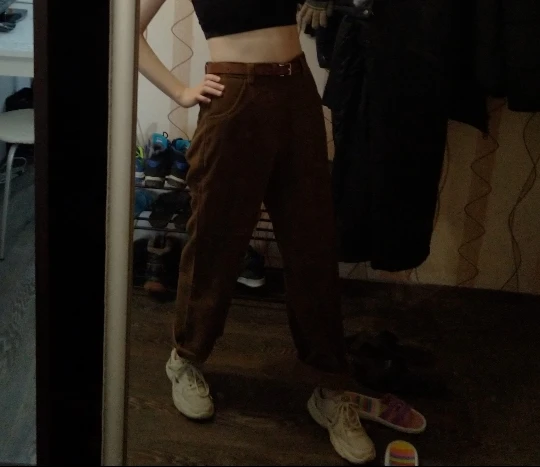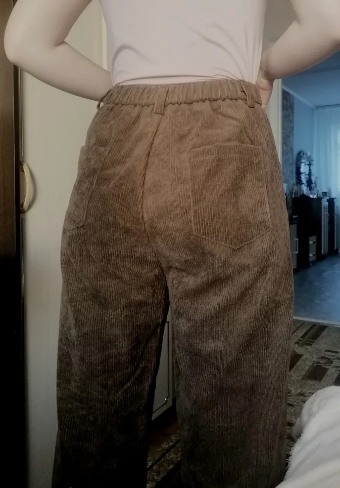 Pants are just gorgeous. Reached in just two weeks, in the kit there was a belt and as a gift put an elastic band for hair. The fabric is not particularly thick, quite cold, but on warm weather will do. I took a larger size, but it was worth taking my own, pants do not malomerit, but rather long.