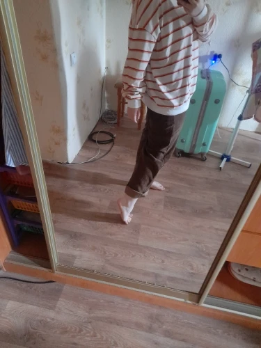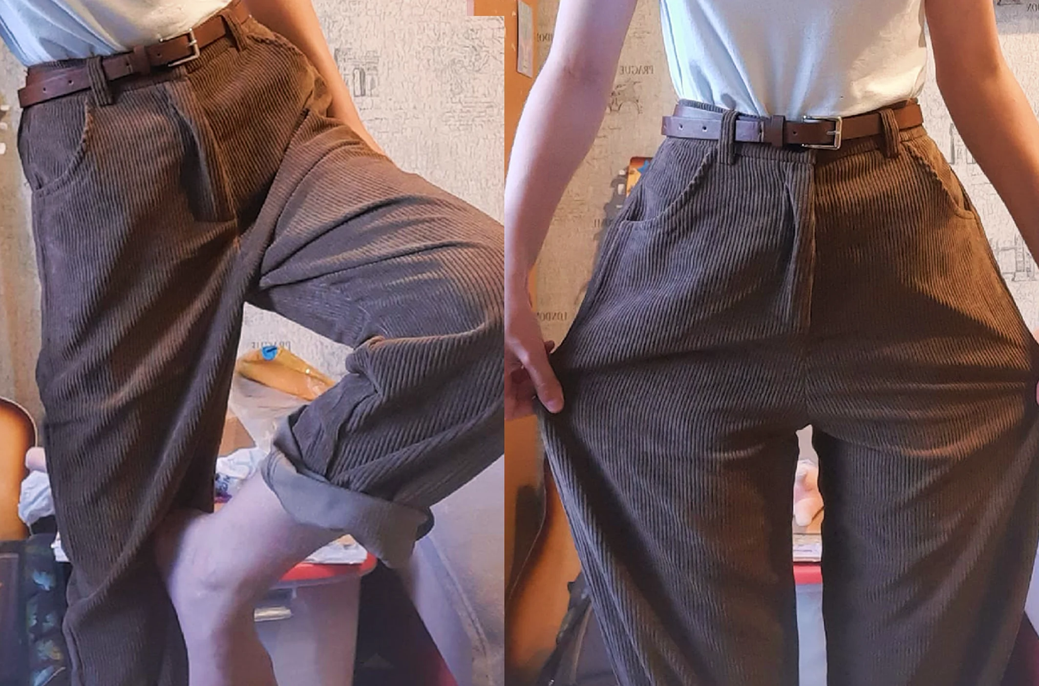 So, the volume of the hips I have 86, waist 65, weight 43, and height 158 (pants almost to the floor). They turned out to be bigger for me. I was throwing between S and M, for I was afraid that it would be tight at the waist. At the waist, the pants really sit tight, but perhaps a smaller size would come up. The fabric is thin, the color is more dull than in the photo of the product itself. In front it looks good on me, and on the hips the pants are wide, so behind the fabric is strongly hanging. However, I like it, free, convenient, it looks great. Mom said I'm Taras Bulba, ahaha. In general, I recommend, krutetsky product, I will wear it in any case. Good luck to all!