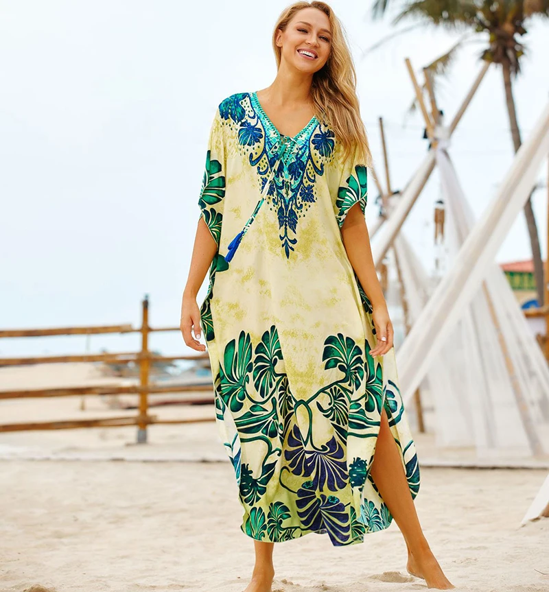 New Cotton Beach Maxi Dress Cover up for a Bathing suit. Kaftan Style New in Fashion for Women in 2021.