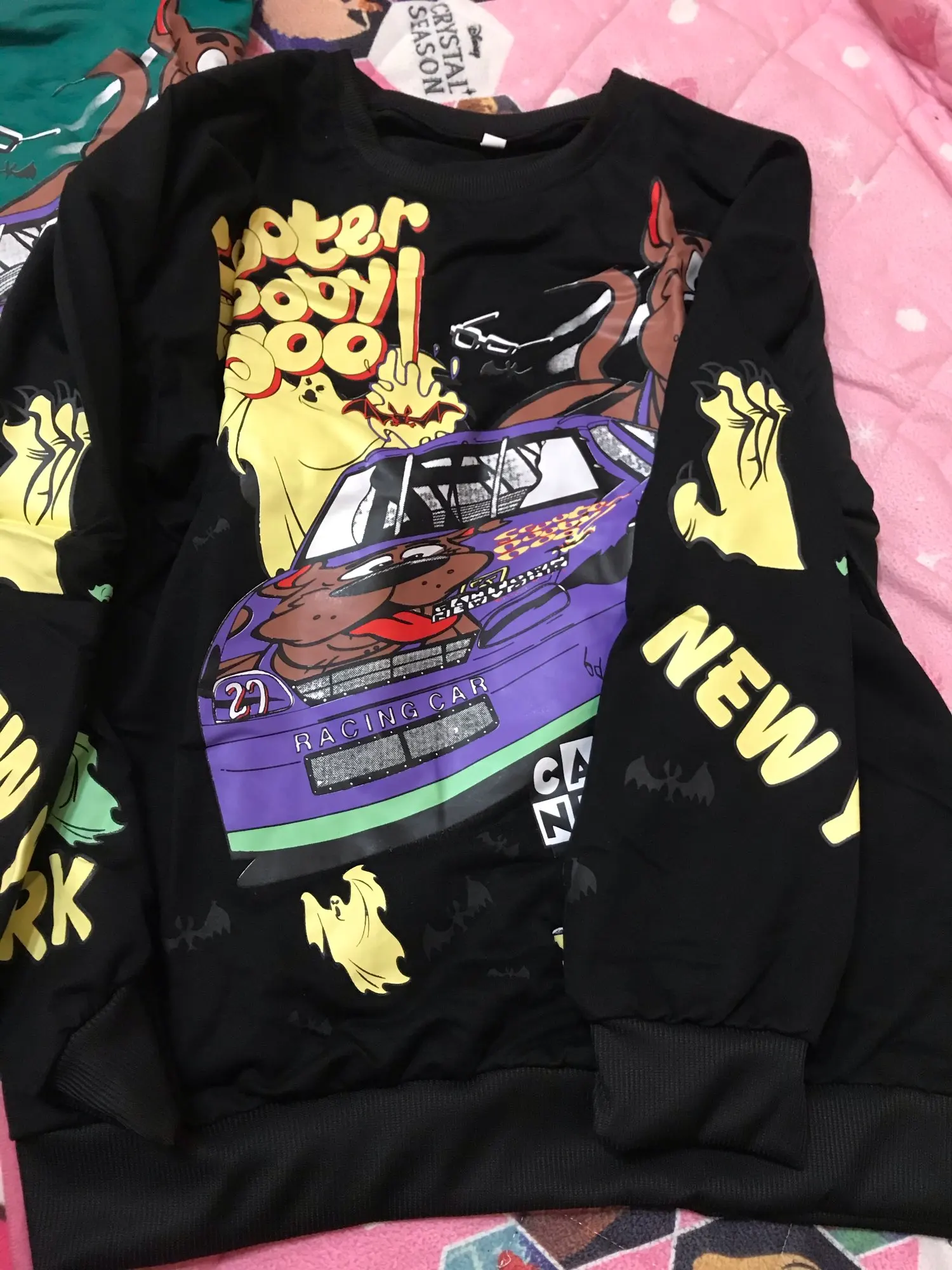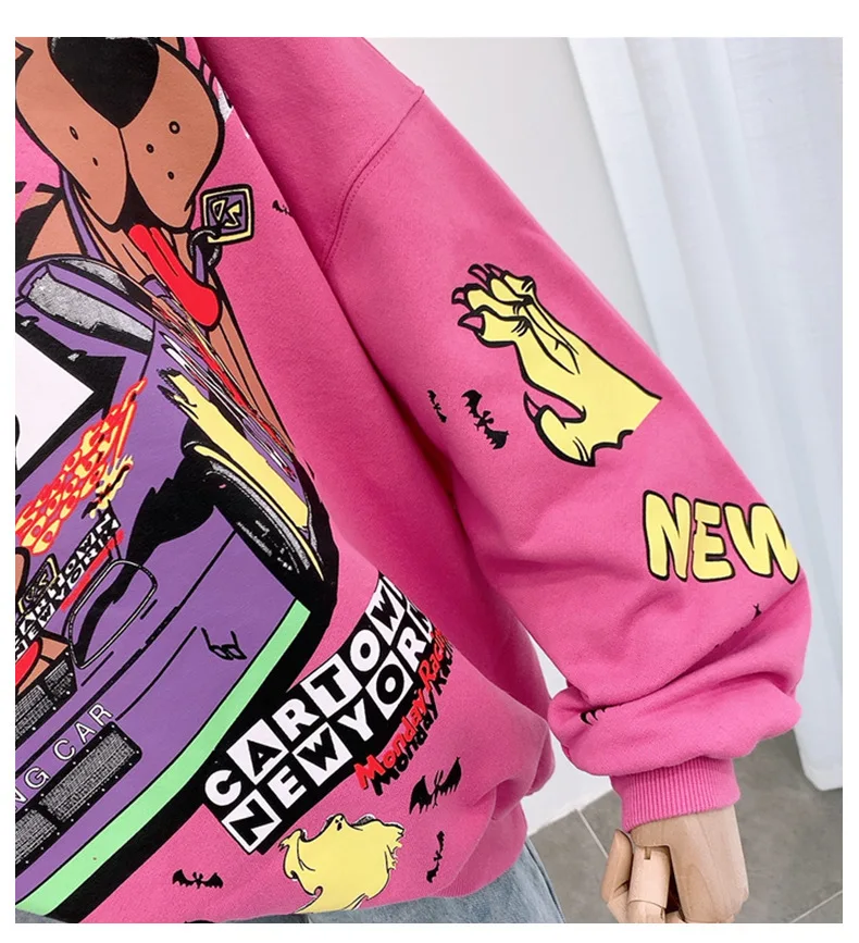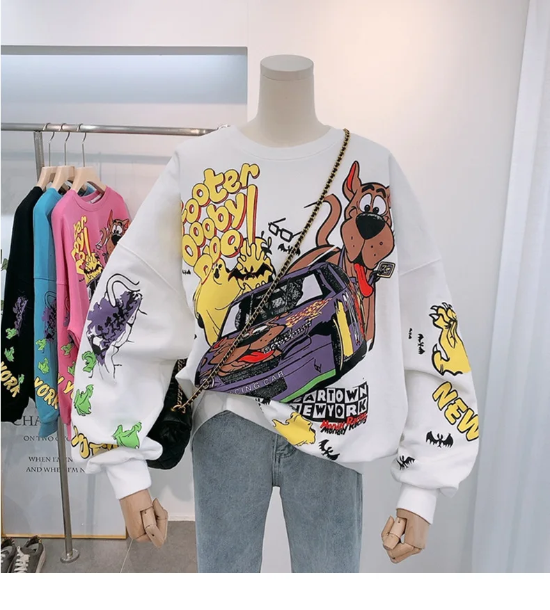 Women's Dooby Doo Hoodie for Autumn 2021 Funny Cartoon Car & Dog Print Sweatshirt Oversized Streetwear Sweatshirt, Hip Hop, Cool Pullover Top