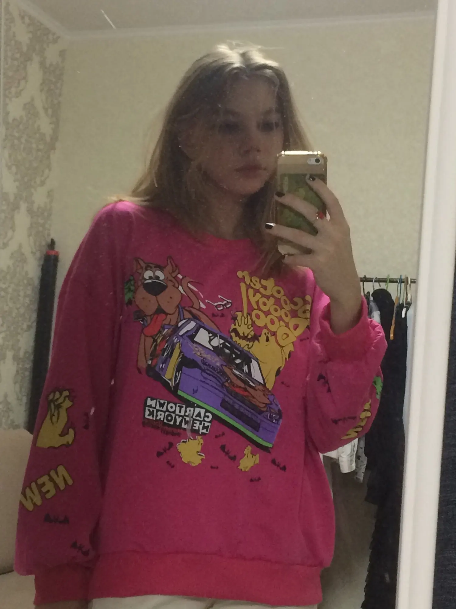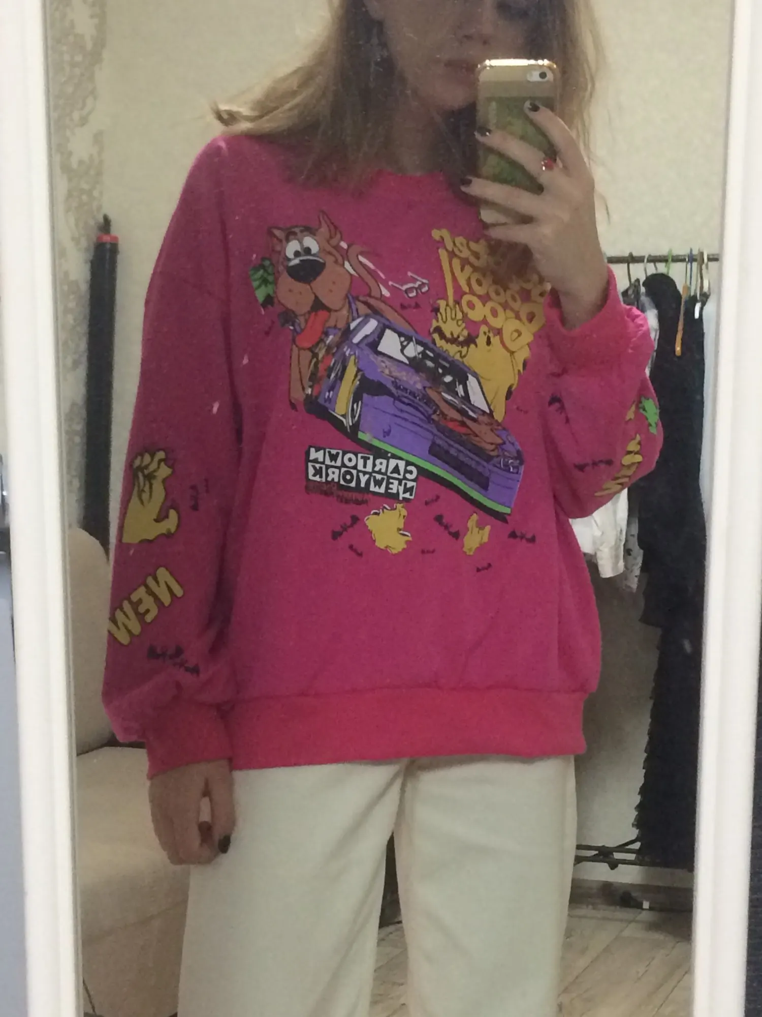 Cute sweatshirt, pleasant to the body. Exactly as shown in the photo. Print quality, without scuffs and cracks. I advise everyone!