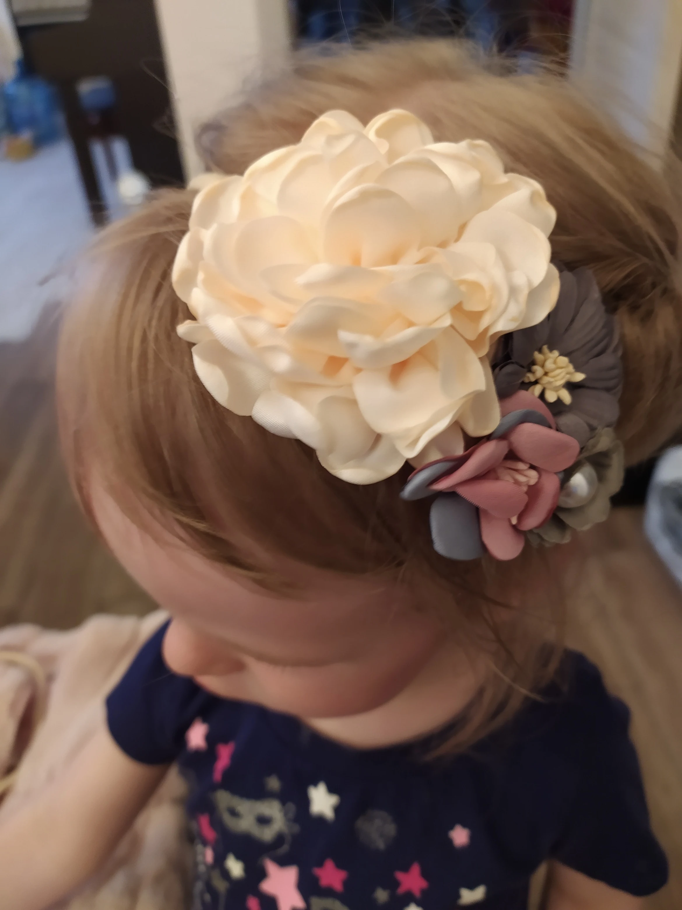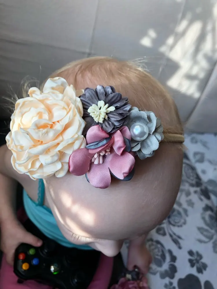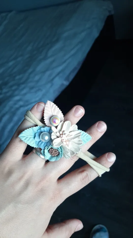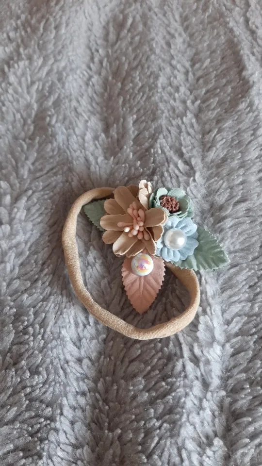Description>>> 1. Item: Big Flower Headband 2. Size: Suit for 0 to 3 years baby 3. Material: Nylon+Fabric 4. Colour: As Picture 5. Quantity: 1pc Feature 1: 100% Brand New and High Quality Feature 2: Baby Infant Fashion Princess Pearl Flower Headband Feature 3: For Birthday Party Gift and Photo Prop