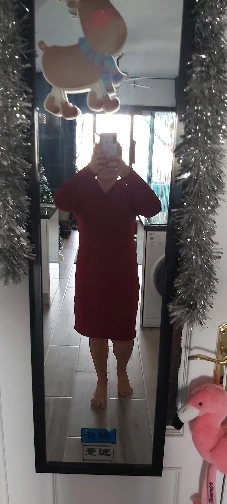 I learned quickly, the dress is norms, the material is synthetic but it's warm. Looks like OK, although for growth 178 cm for my taste is short