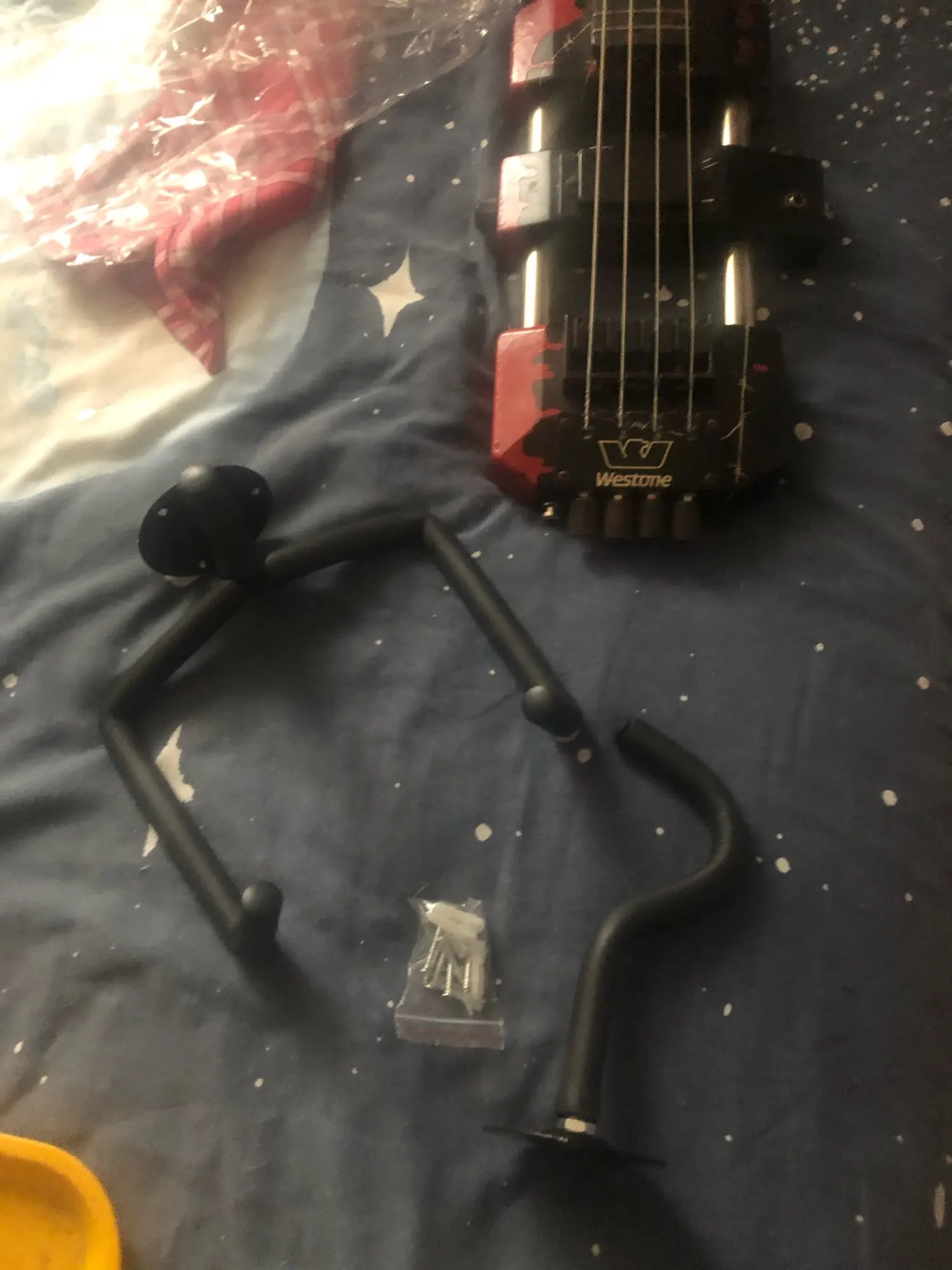 Dowel short as screws. Therefore, bought more) the guitar hangs and pleases the eye