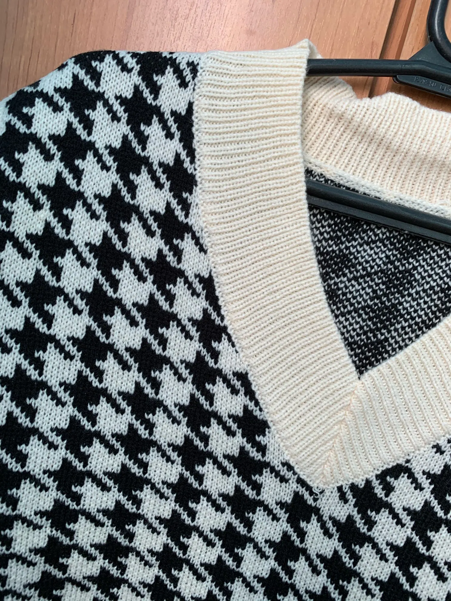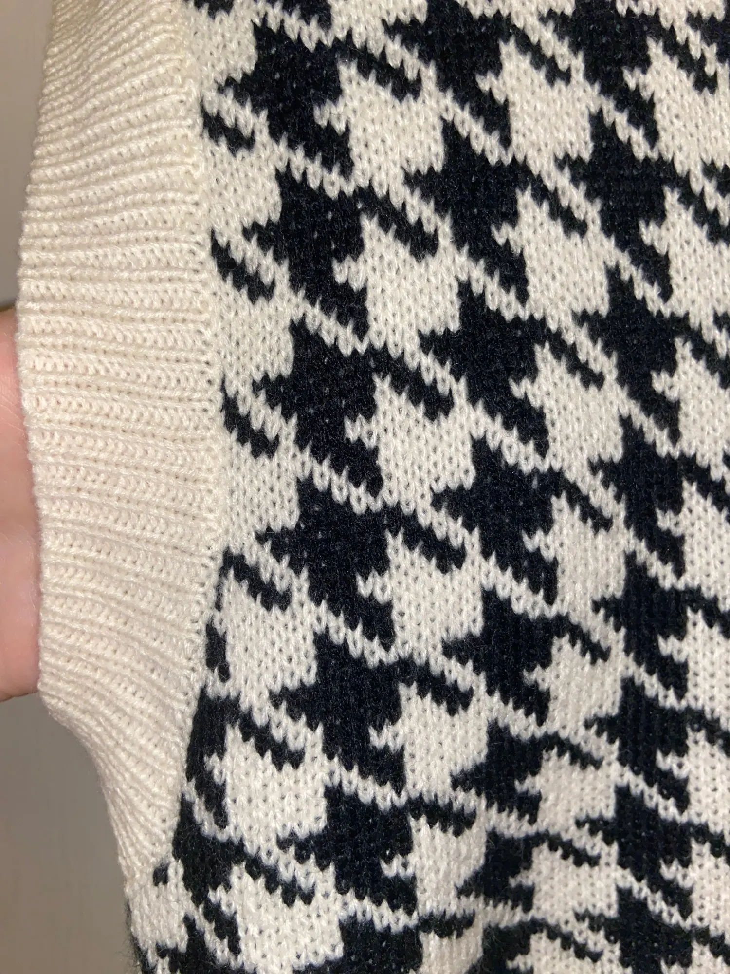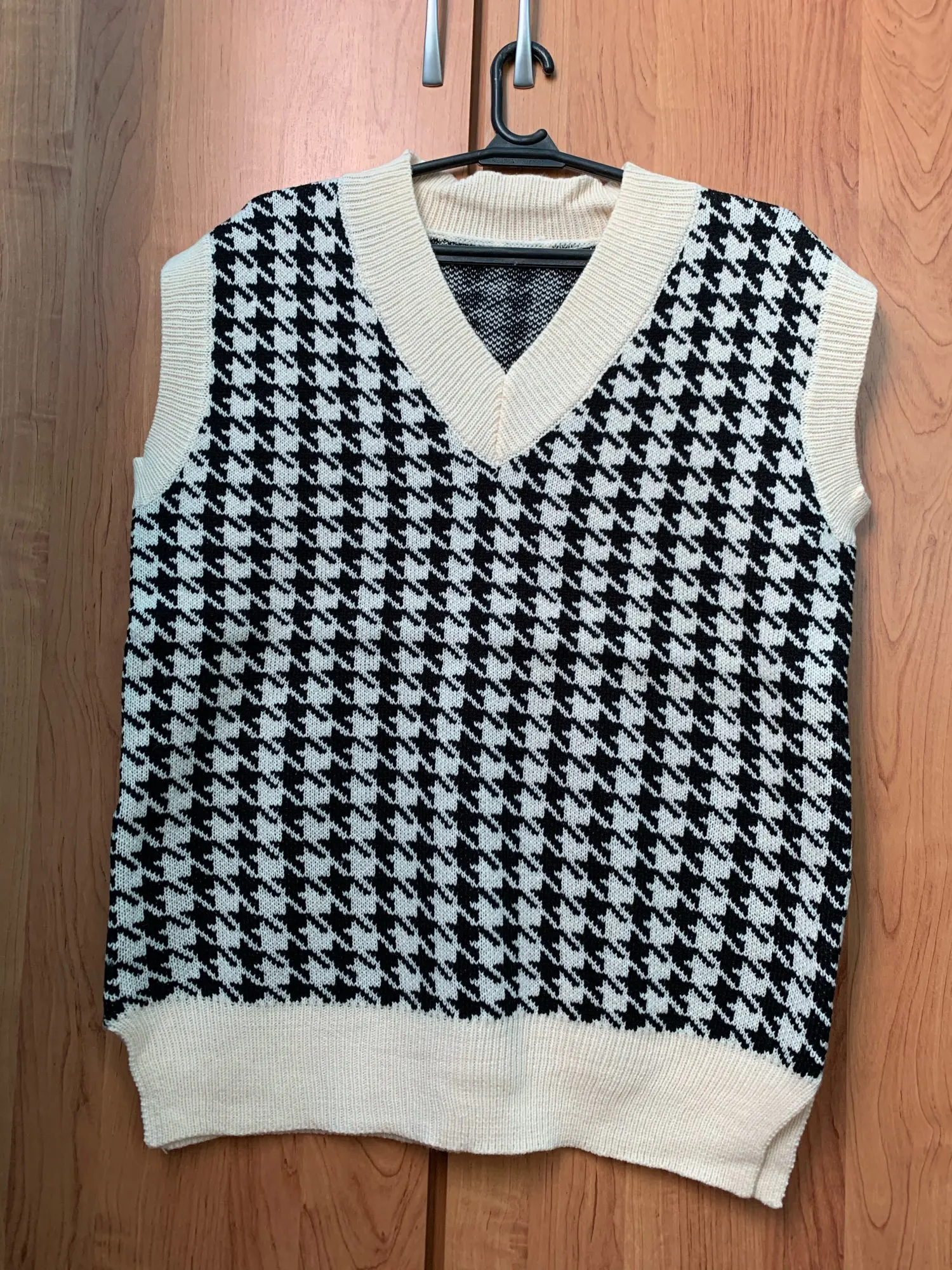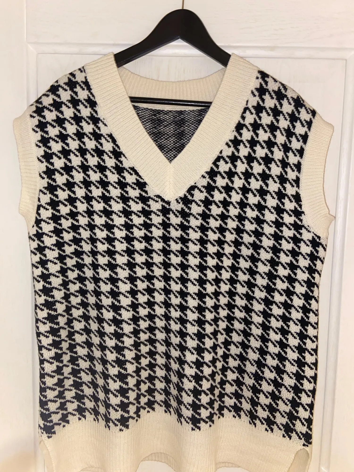 Check out this terrific houndstooth sweater vest and blouse set! Made of high-quality material! Buy now!