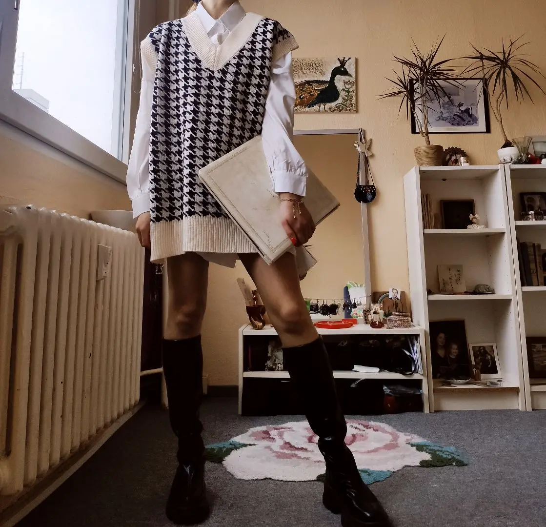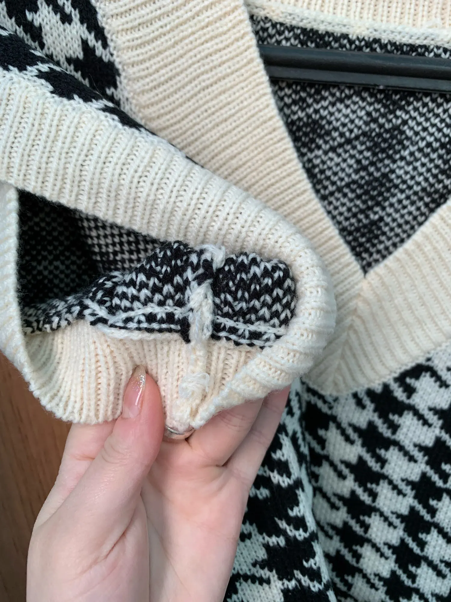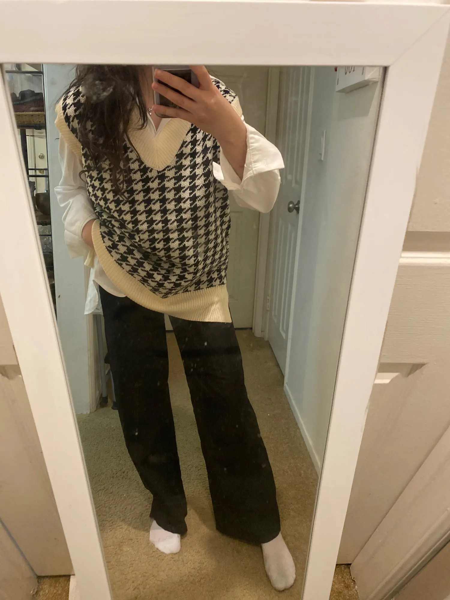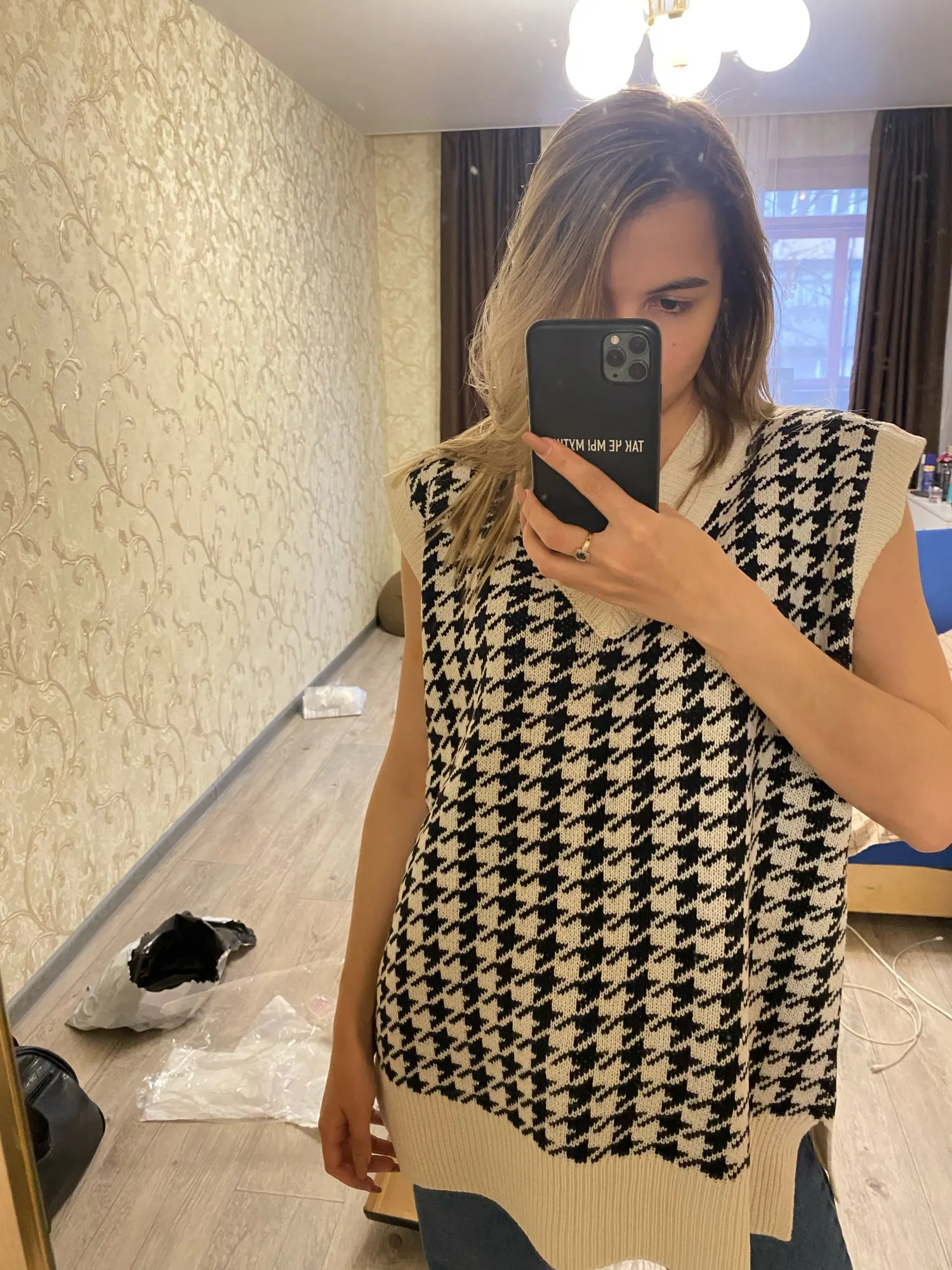 Check out this terrific houndstooth sweater vest and blouse set! Made of high-quality material! Buy now!