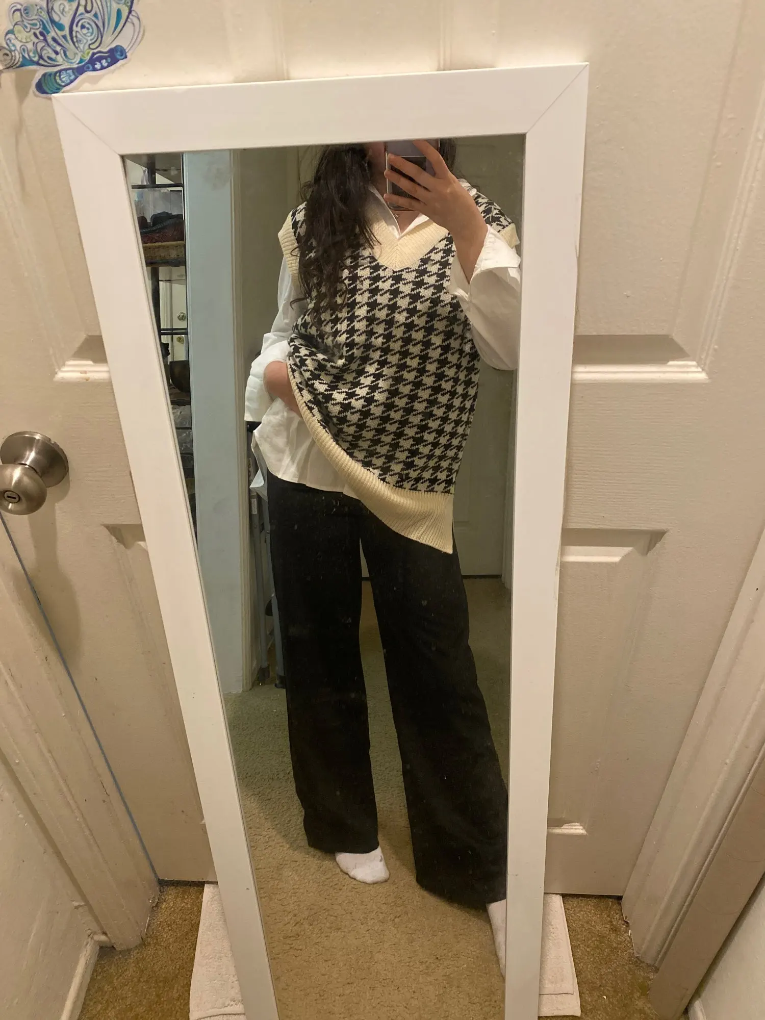 Houndstooth Sweater Vest with Long-Sleeve Blouse