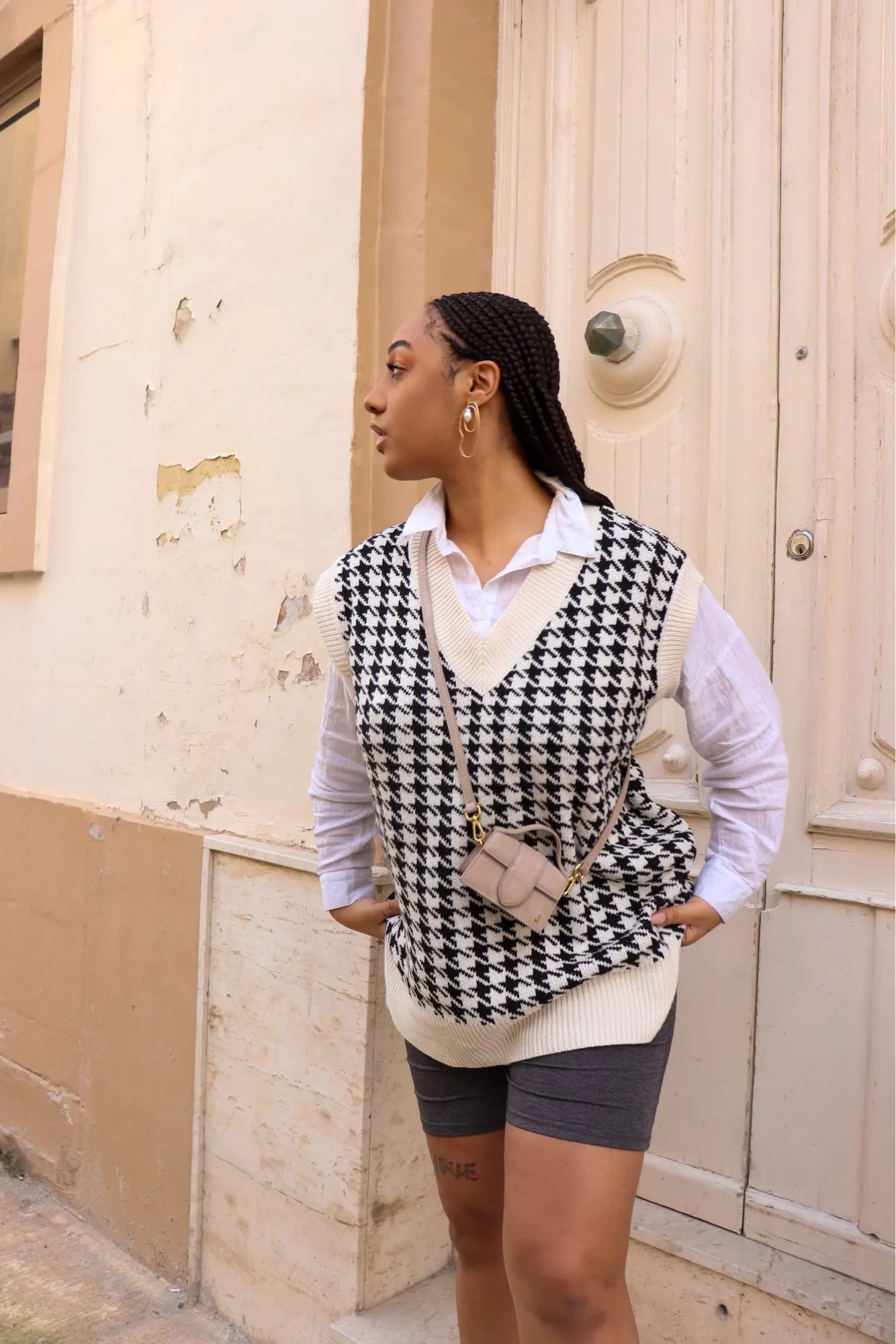 Chic Houndstooth Sweater Vest and Blouse V-Neck, Sleeveless Pullover A Great Outfit Set For Any Occasion