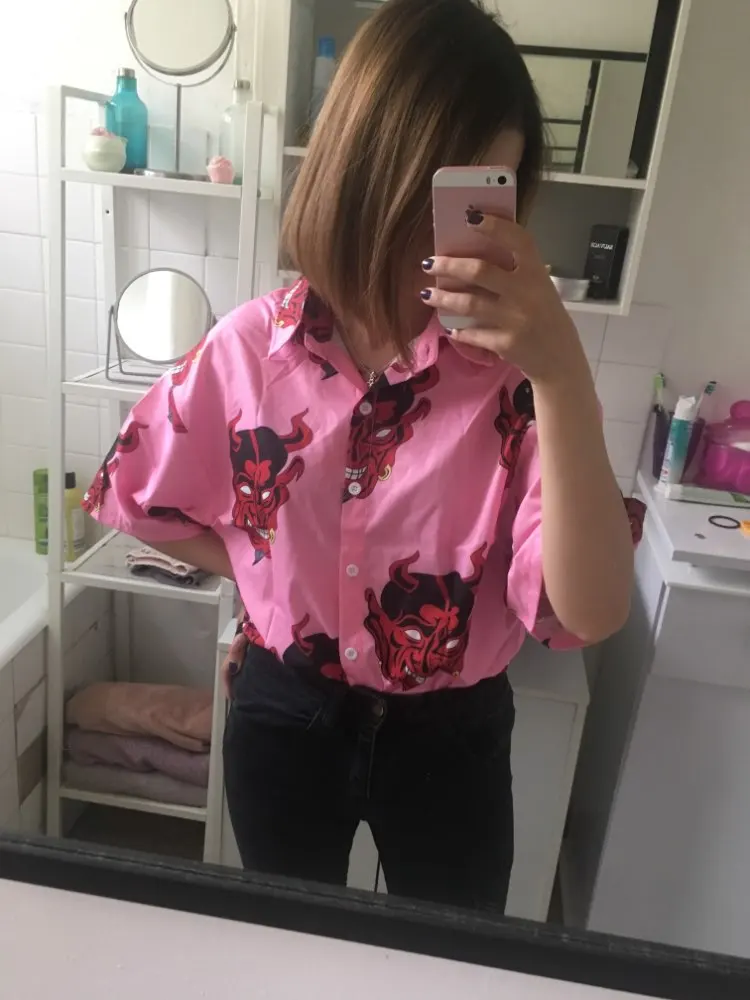 it's so cute and exactly like the picture. the buttons were difficult to button up but I got it eventually. it fits oversized on me and I'm typically a xs-s. machine washable. no complaints