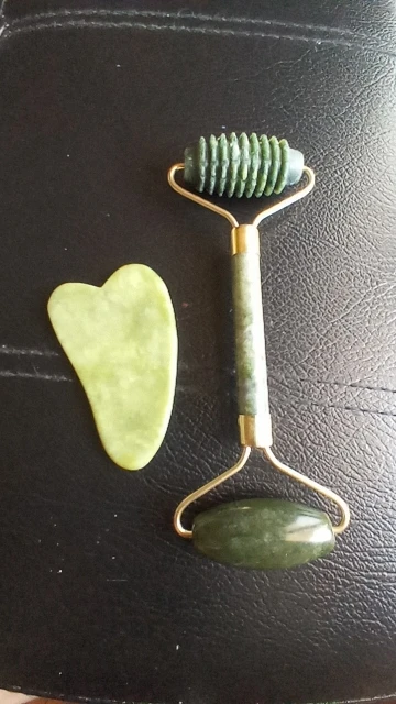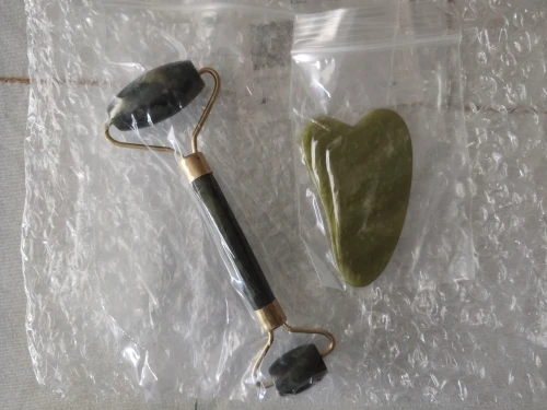 You can use the jade roller together with skincare products. Put the jade massage roller into hot water for a few minutes before using it. It will be more helpful to expand pores and accelerate skin absorption skincare products.