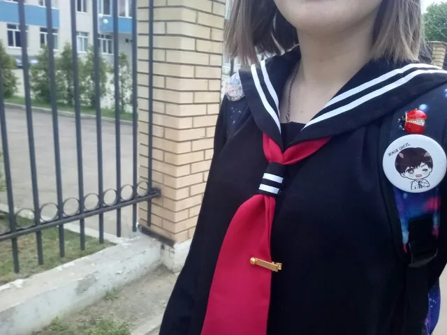 Fuouf, i thought i ordered a uniform with golf, it turned out that there is no. Sorry. But what can i do? There's nothing. The order came, the size is the same. I really liked the form and came to school uniform on june 1)))) Coincidence? I don't think so. How lucky i am with a tie. He came in excellent condition. Sailor too. I like it the most))) The skirt is also pretty. Thank god was not as short as in the photo)