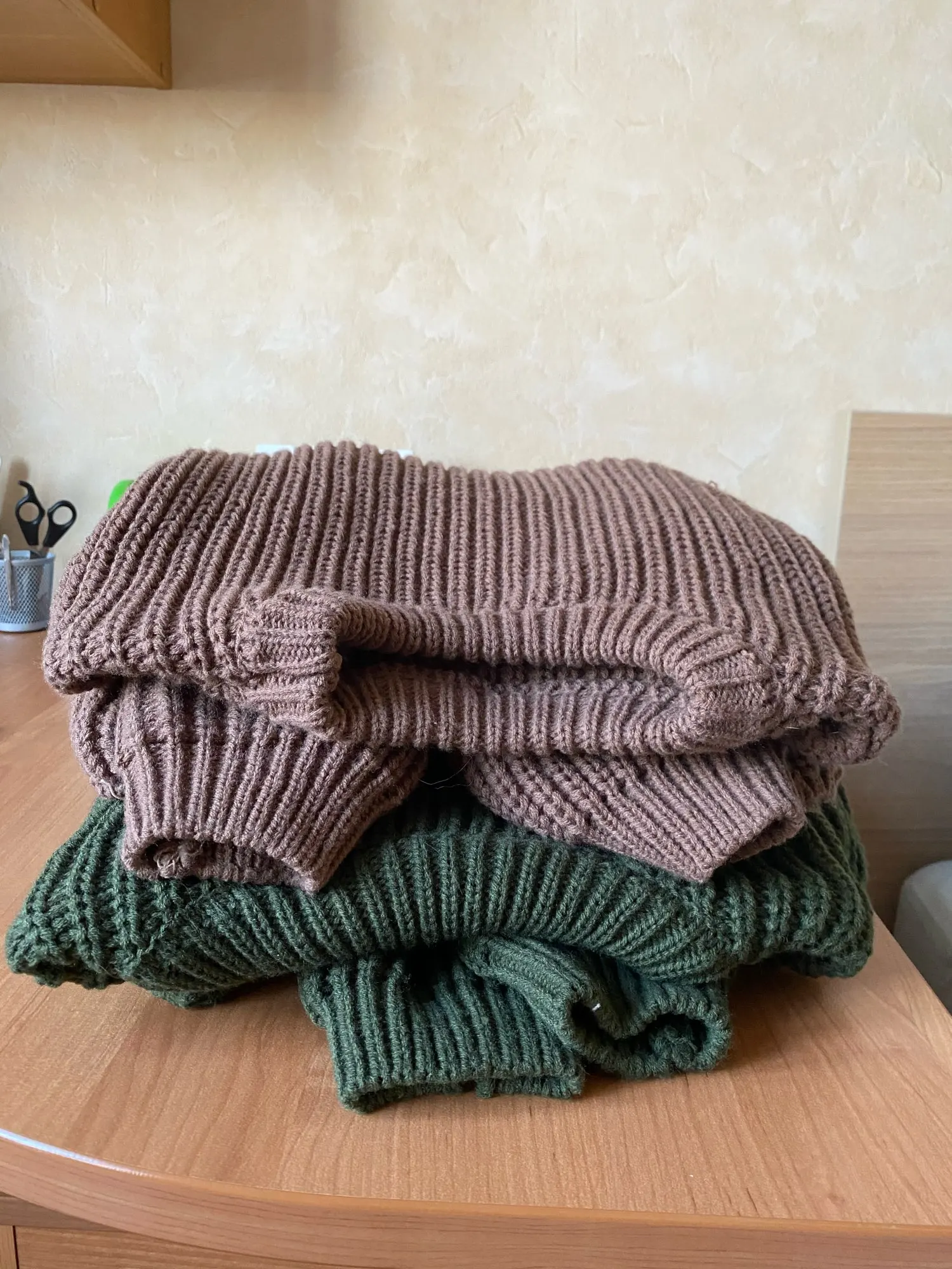 A good soft sweater, I'm happy. Very warm, and a little oversize, I so wanted.
