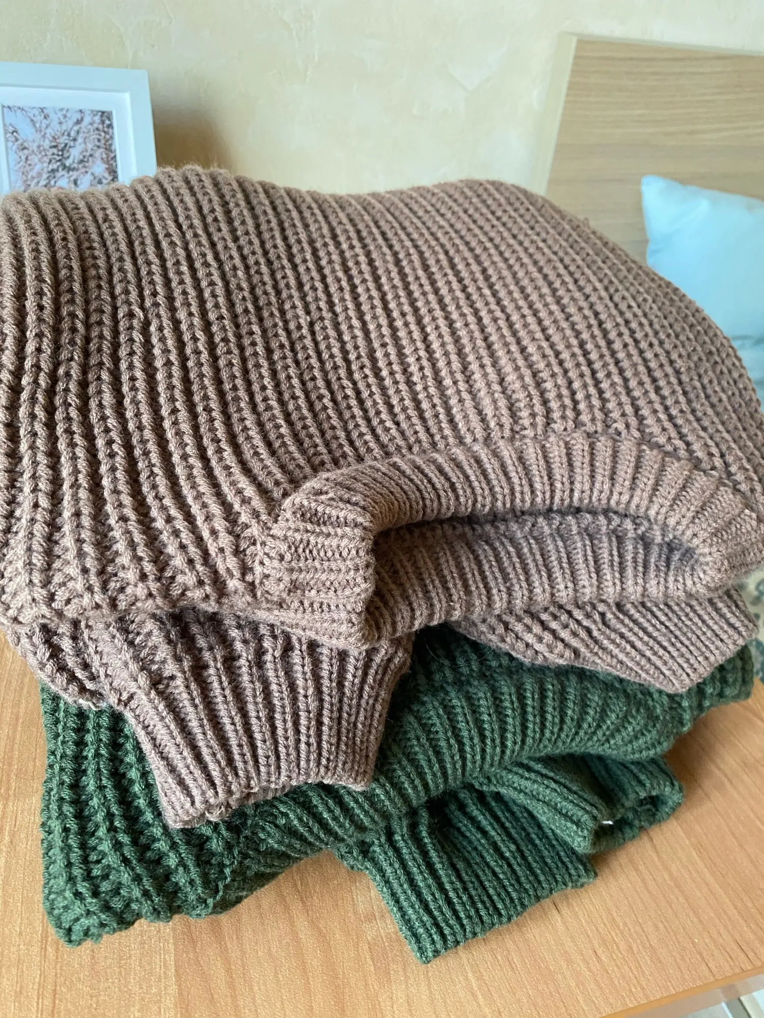 Warm, cool sweater! That's what I was waiting for. The pictures of the store correspond. Color, as in the photo (hand on a white background), but slightly darker. The color is quietly Brown, not going yellow. Length is good. On my 47 kg sat a good oversea. Sleeves with a margin, length along the ass. Suitable for M quietly. Maybe more. Without purchasing, only 1 was, but I removed the inside. To Kazan has reached 2 weeks. I recommend it! Thank you.