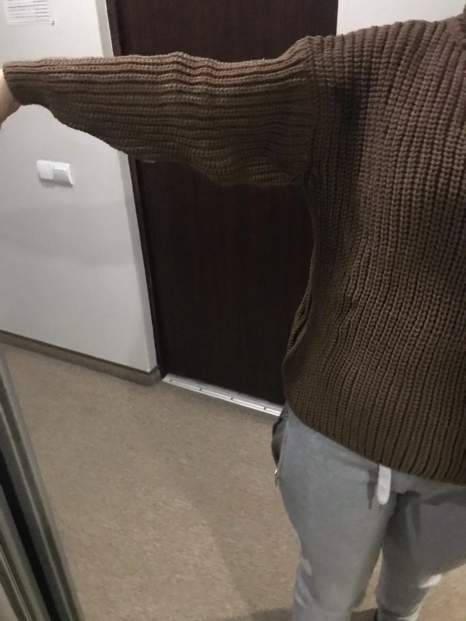 Nice sweater! Soft, cozy, pleasant to the body! According to the composition, most likely acrylic. Warm enough. On my size M sat perfectly, freely, as it relies on the sweater! The length of the sleeve is 163 cm. Just right! Who is higher, the sleeve will be short! With the store did not communicate, sent quickly. The parcel came in time, the track was tracked.
