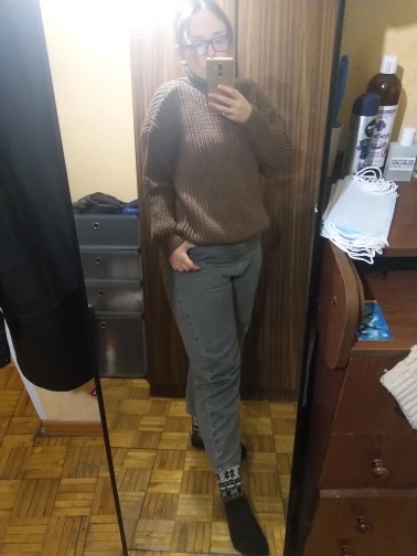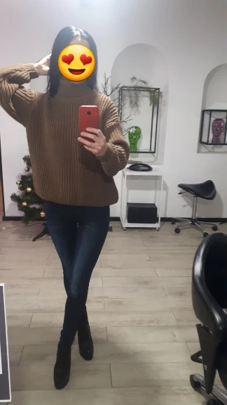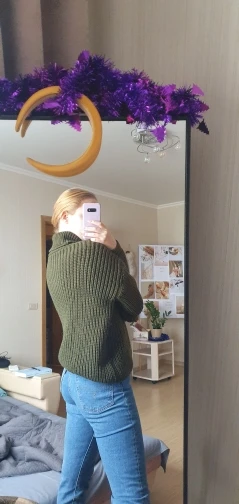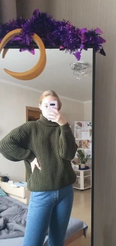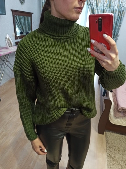 Delivery to the point of issue is very fast, just over a week. Came packed in two bags, neatly rolled. Sweater liked: warm, cozy, not pricked perfectly, the color is deep and unusual. The throat is tight enough, you can do with it without a scarf. On height 173, the length is standard. But there are a few moments that have made me a little confused. The knitting of the sweater is large, but not dense, because of what just on the naked body to wear it is not worth it-it will blow. And if you have long nails, with this viscous need to be super careful, I have already put some leads, the good of fixing them quickly. And the seams were also a little confused, they do not look very reliable, they were like sewn by hand, at the same time, very quickly. But if you wear it neatly, do not stretch strongly, I think nothing will happen. In general, the purchase is satisfied, thank you to the store!