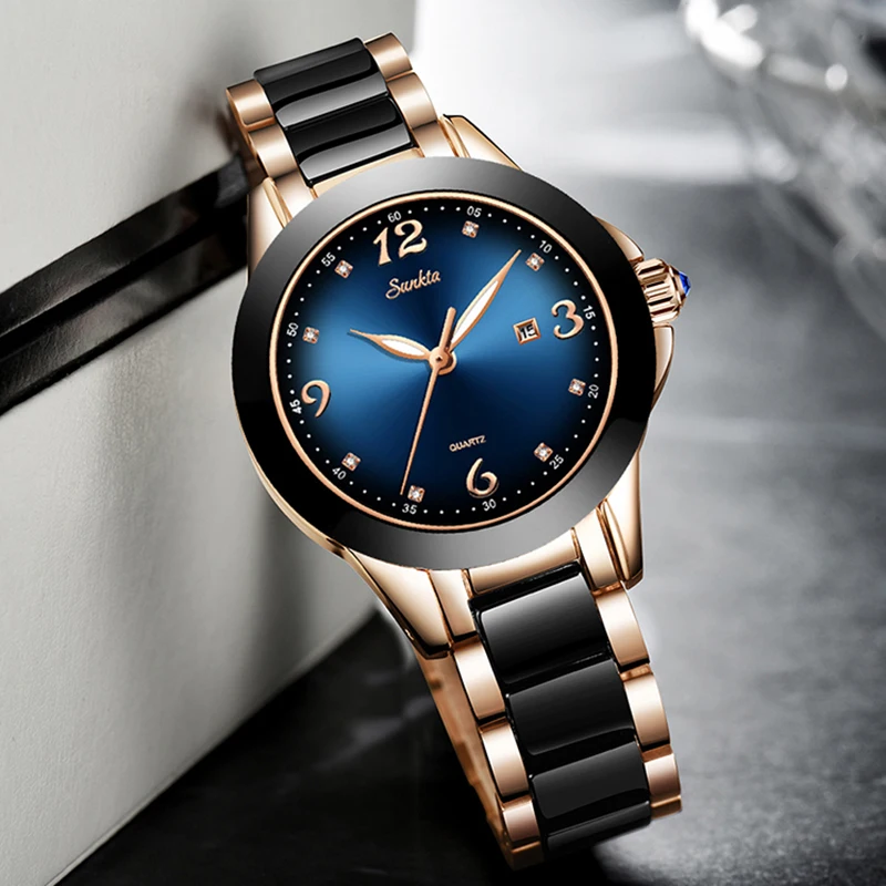 Ladies Luxury Ceramic Rhinestone Quartz Watch