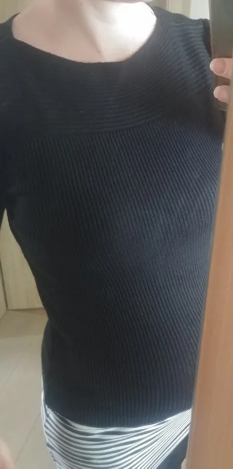 Soft, nice sweater, size compatible with table. Goods well packed, with delivery in three weeks to Poland. recommend salesman and product. The picture color black and white