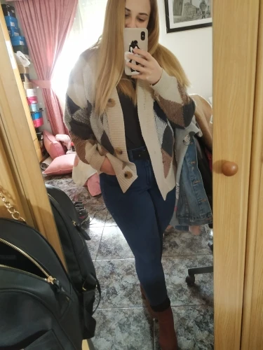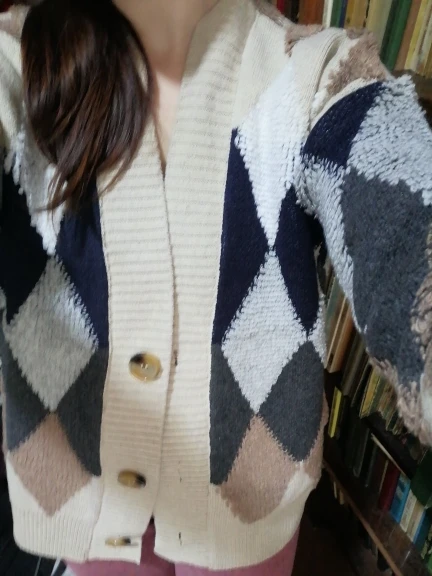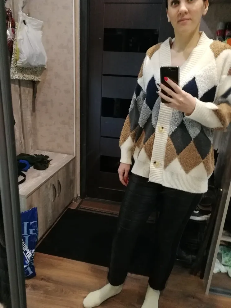 Great cardigan! Warm soft. On the size 46-48 freely. Come quickly. Recommend. Thank you store.