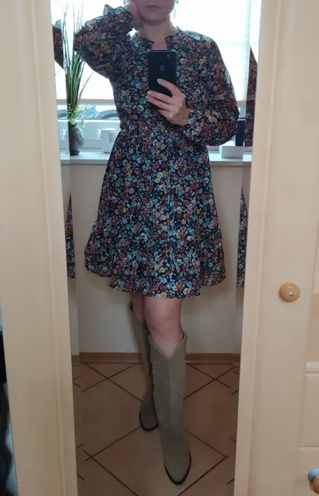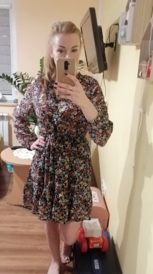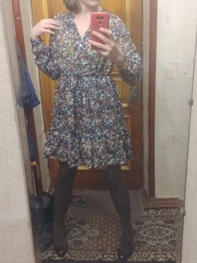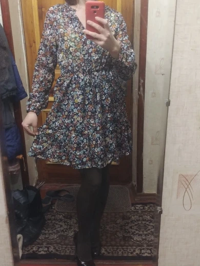The dress is just super!! Pleasant fabric, bright! Sewn very neatly! On the growth of 173 the length of the dress is not critical, the head is full, with the account that my hands are long. So high girls take care of L, there will be norms I recommend!!!!