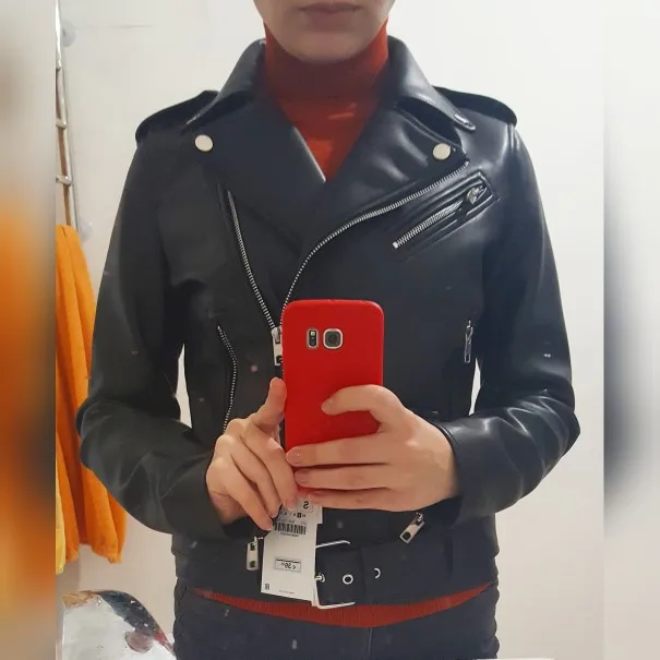 The quality is wonderful, looks like leather, expensive look, everything is quality! My parameters Og-90 cm Ot-65 Ob-83 cm My height is 157cm Weight 50kg For a long time I thought what size to take because I'm a small growth and wanted the effect of a jacket to sit on a figure. I wear women only on T-shirts or dresses do not like to wear on sweatshirts or warm sweaters. If you have my parameters but want to wear on warm things take more and if you want the effect of the jacket then take as I. At first I ordered m but then asked the store of Kakoi will fit my parameters, answered me that s will be good, then I agreed, wrote to the seller and he changed. Also asked with the tag Zara, and it came. Everyone took into account respect for your wishes. Came the parcel for 1 month. I recommend, take it without a doubt, good luck to the store!!! Many thanks for everything!!!