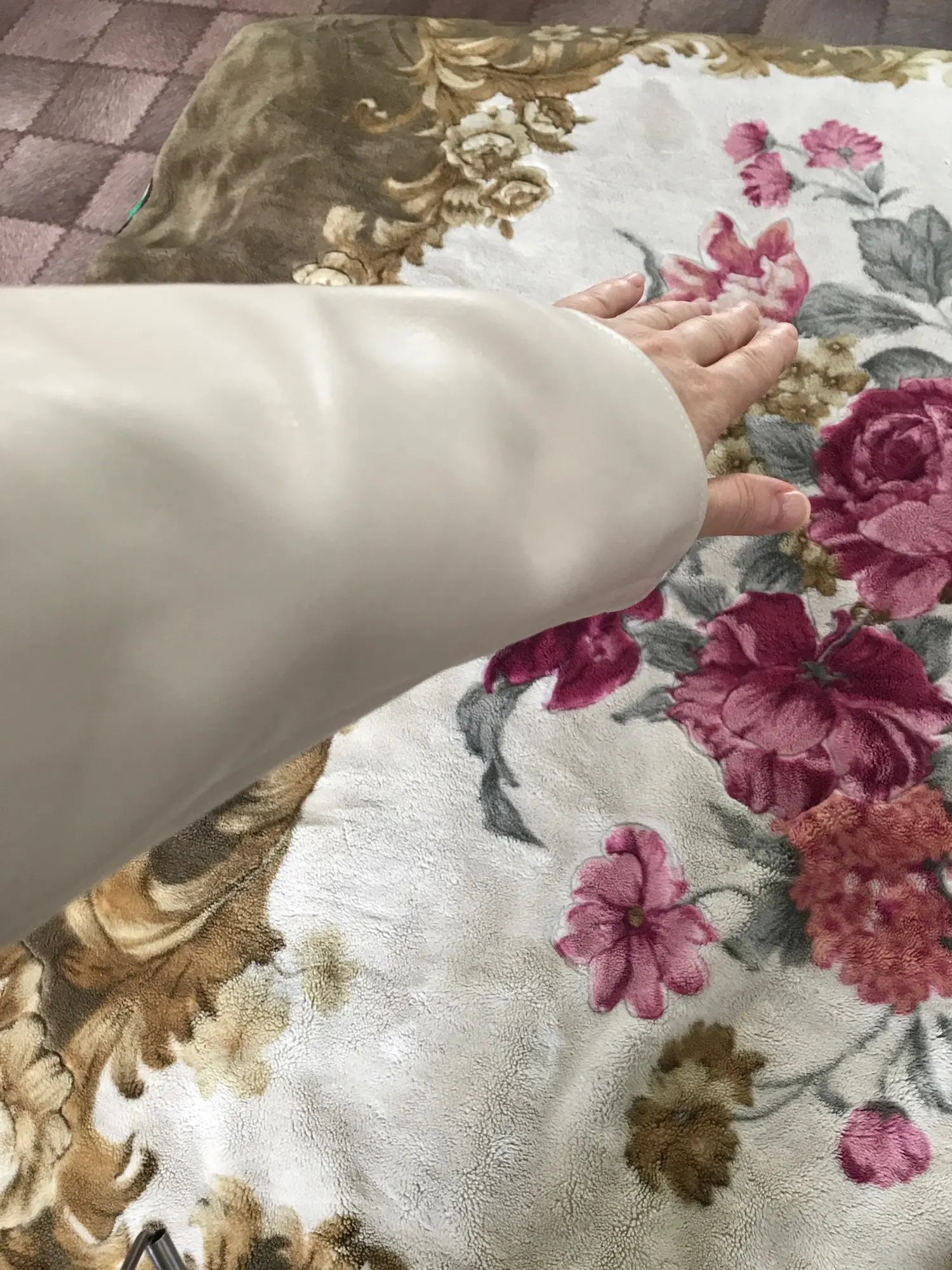 The goods came in good condition. The jacket is soft, very beautiful. The only failure in the tailoring is-the hood on one shoulder is slightly more than expected. It's a little hot. But not critical. I left my jacket. The color is beautiful-cream. On my 85/70/97 village is free, you can wear a sweatshirt. Suitable and M. The length of the sleeve slightly passes the wrist. If I take another jacket, I'll order m. To make the sleeve fit my size. I did not communicate with the store. Thank you for the goods!