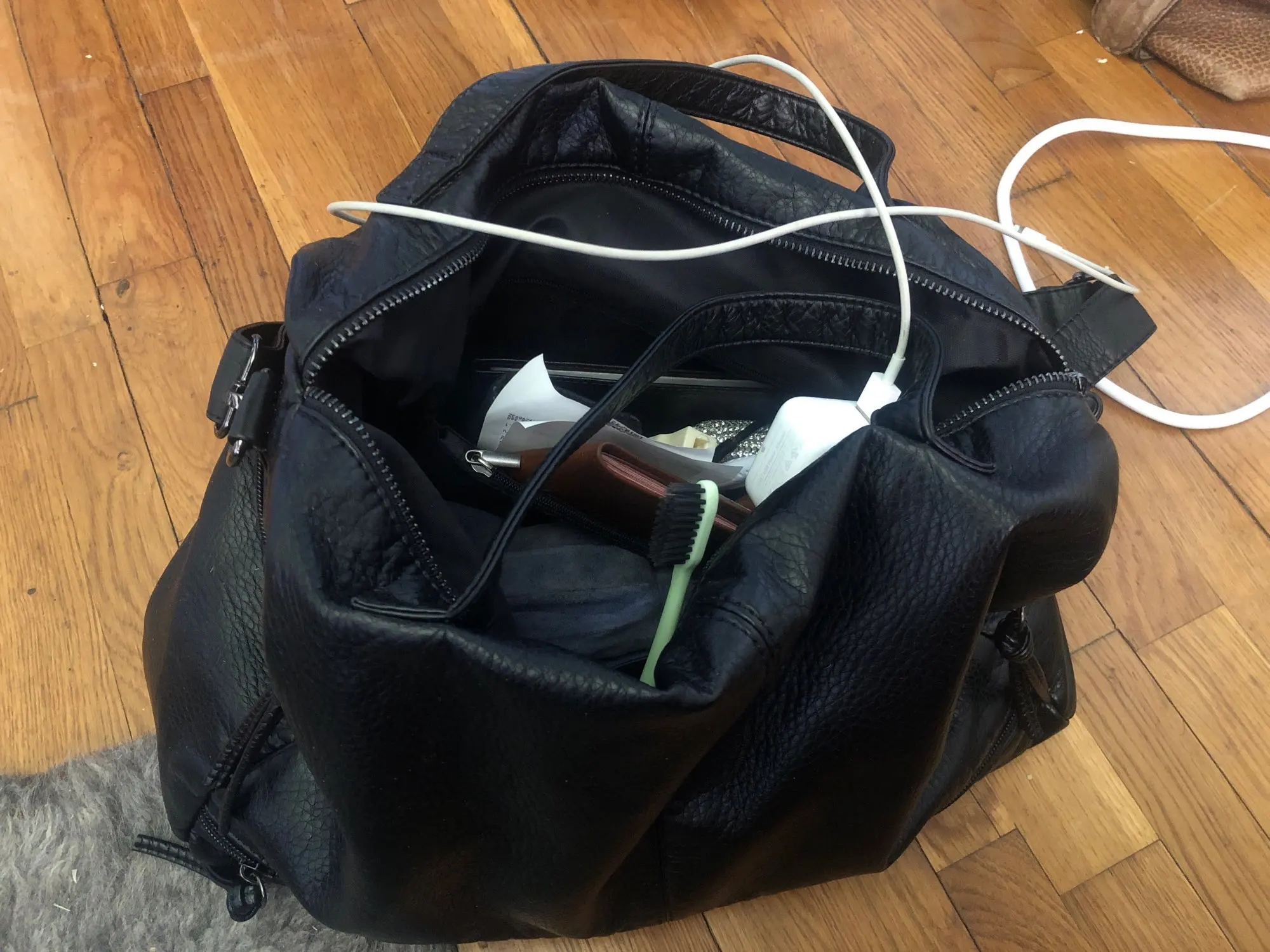 Looks more compact than in the store's photo, neat, holds everything you can, looks neat and with a long coat, and with a punch