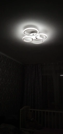 Excellent chandelier, especially for such money. We have such 2 times more expensive. The room in 15 M2 is quite enough.