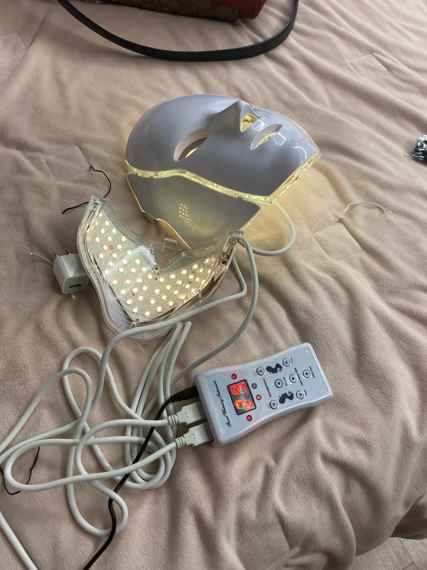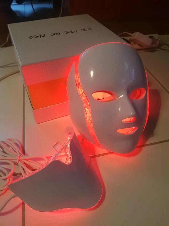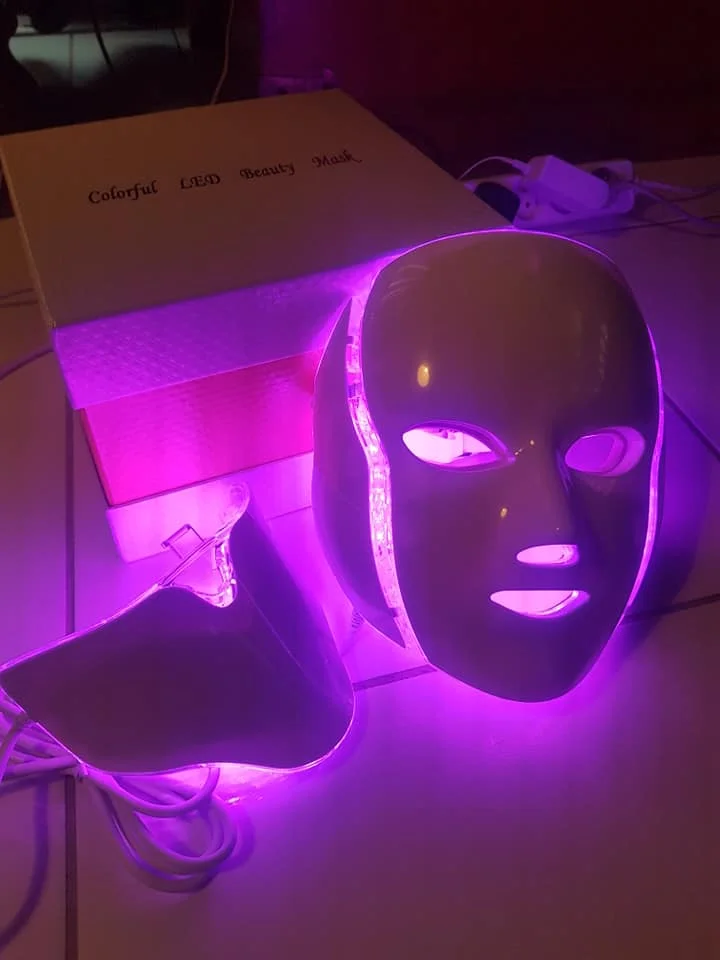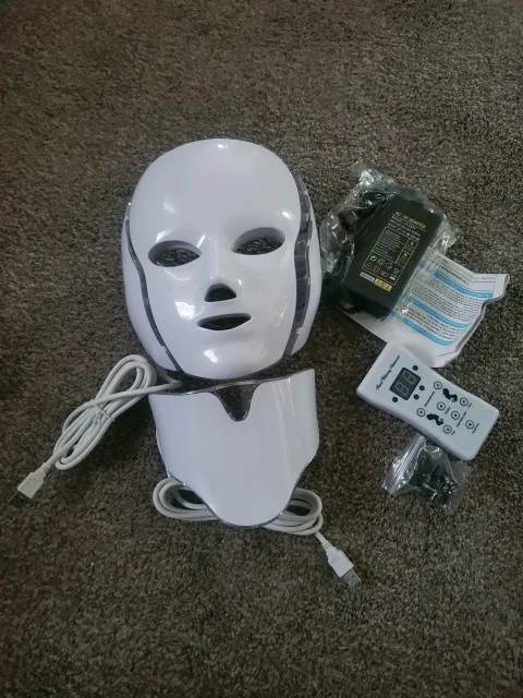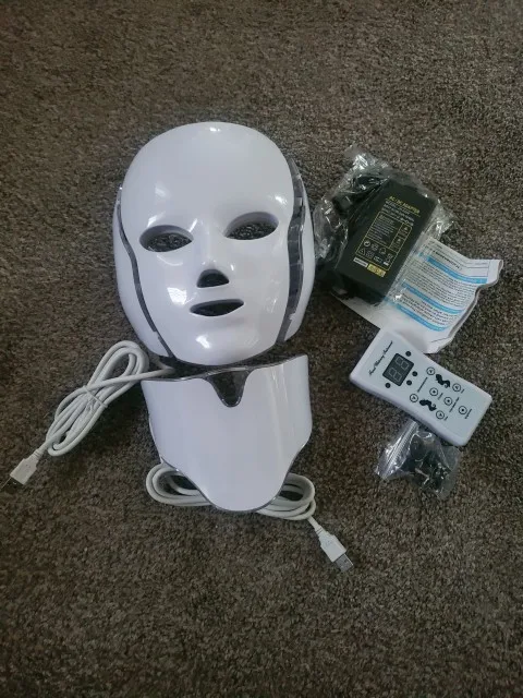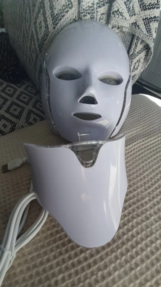 LED Therapy Face and Neck Masks Item Type: LED Therapy Mask Material: Plastic Package Weight: 1.8 kg Package Dimensions: 30 x 26 x 19 cm Voltage: 110 - 220 V/50 - 60 Hz Power: 20 W LED Quantity: 192 LED Color: Red, Blue, Green, Yellow, Purple Application: Face, Neck Suitable Skin Type: Most Skin Types Package Includes: LED Mask, USB Controller, User Manual, Power Adapter Features: Beauty Gadget, Skin Care Gadget, LED Therapy, LED Treatment, LED Mask, LED Neck Cover, Plastic Material Suitable for people: with an irregular diet, staying up late, sitting in front of the computer and use cellphone frequently. For skin: spots, freckles, acne, dull, dark yellow, large pores, coarse and sagging skin Product description Type: photodynamic led facial beauty mask wrinkle removing Skin machine,  facial massager, LED therapy machine Voltage: 110v-220v, 60Hz/ 50Hz Plug: EU, US, UK, AU Plug Product Weight: 1.8kg (With Original Box) Package Size: 30x26x19 cm Number of LEDs: 192 LEDs Colours of Lights: 7 Colors Output voltage: DC10V 2500mA Output power: 20W (Max) Operational Cautions 1. Recommend to sue for 20 mins per day 2. Do not stare at inside when operating 3. Do not try to use it with a wet hand. Functions: Reduce and prevent wrinkles, helps fight fatty areas Improve skin elasticity Minimize Pores Balance skin tone Enhance circulation Inhibit the formation of melanin pigment Accelerate blood circulation Minimize scarring relaxation, elevate the immune system boost sleeping quality improve blood circulation temporary relief of sore and stiffness contribute to a healthier skin Help to Activated the collagen Promote skin collagen growth, make the skin more translucent and white Tighten pores, making the skin firmer, improve skin brightness, more smooth and elastic Accelerate Detoxification Effectively accelerate skin metabolism rate, promote the excretion of toxins of skin Oxygen Increase Promote skin permeability, increase oxygen to lock skin moisture Repair Skin Promote blood circulation, lighten freckles and red bloodshot LED face mask is very effective for many types of skincare treatments, when using it on a daily basis for no more than 30 minutes per day. The mask has an eyepatch itself, do not worry, the led light will not hurt the eyes. Prohibit Usage for: Pregnant women, children, Thyroid disease patients, Allergy Prone - Usage of drugs can easily cause allergies. 7 Colors LED mask can solve stubborn skin problems: Red light(630nm): whiten pale spot, tender skin and anti-wrinkle, repair damaged skin, smooth the fine wrinkles, shrink pores, hyperplasia of collagen. Blue light(470nm): efficiently minimize and heal acne, repair the skin without leaving scars. Purple light: it is red and blue dual-band light, a combination of two kinds of phototherapy effect, especially in healing and repairing the acne scar. Laser light (White light): resolve age spots, improve fine lines and sagging skin. Greenlight(520nm): Neutralization, balance skin condition, relieve mental stress and effective dredge lymphoid and oedema. Yellow light(590nm): improve coarse skin and wrinkle, redness, fever, ringworm of the skin, increase immunity. Green Blue light: enhance cell energy gradually, promote metabolism. How to use: Step1: Plug the USB connector at the end of the wire of your LED MASK. Step2: clean your face, wait till it dries. This makes it easier for light to penetrate your skin. Step3: Put on your Mask. You can choose the mode you want and Make sure that you wear it comfortably. Step4: Turn on your Mask and you will see a tinge of red light covering the whole mask. Note: the light is at low-level intensity. You may close your eyes if you feel like a little unwell. Step5: Keep your LED Mask close to your facial skin. You can also change different colours with the remote. Included:  1. LED Mask X 1 2. Remote Control X 1 3. Power Cord X 1 4. Full English User Manual X 1