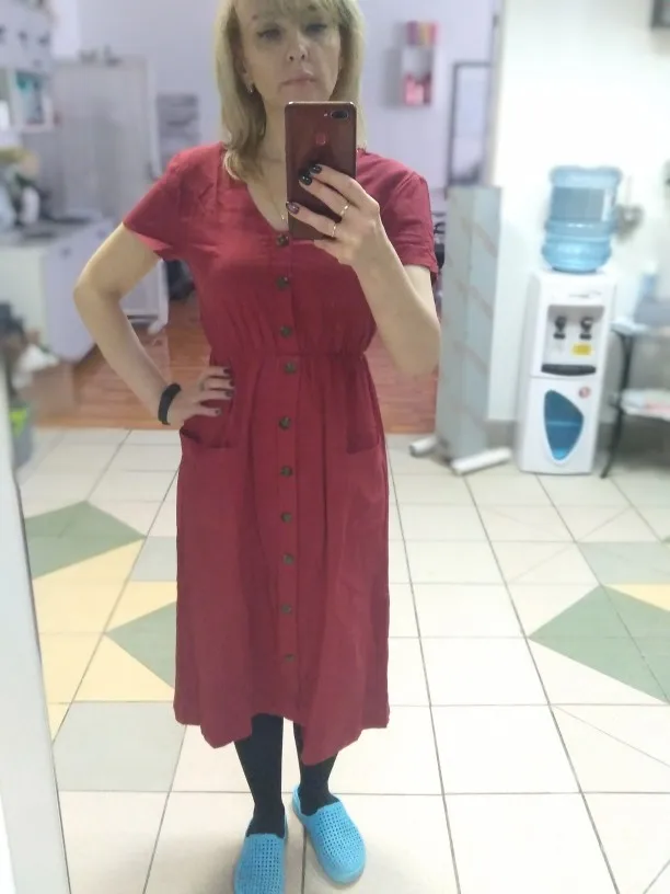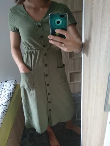 Sukienka bawełniana, rozmiar M idealnie pasuje na wymiary 90/74/98. Moja wysokość 173 cm. Ta sukienka jest idealna na gorące dni, ponieważ ciało może w niej swobodnie oddychać. Przesyłka dotarła do Polski w 2 tygodnie, dostarczona kurierem Pocztex. Kontakt ze sprzedającym jest bardzo dobry! Polecam!