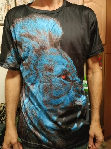 Summer Men's O-neck and short-sleeved T-shirt with Lion 3D printing Our factory is obsessed with Lions! We have all the Lion designs and have been producing these for a long time. Now, brand new is the 3D effect!