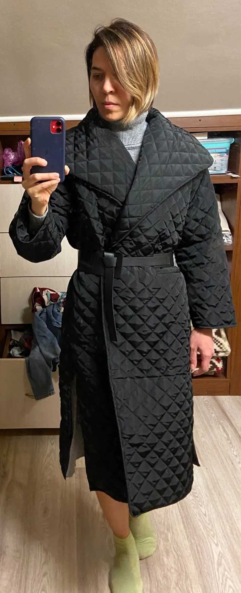 The quality is excellent, the delivery is fast. The sleeve is short, but I think it's a designer's idea... If you look for the replica of this coat, then they are all with a "shot" sleeve, perhaps to open the wrist and brush, thus emphasizing the fragility... My height is 173 cm.