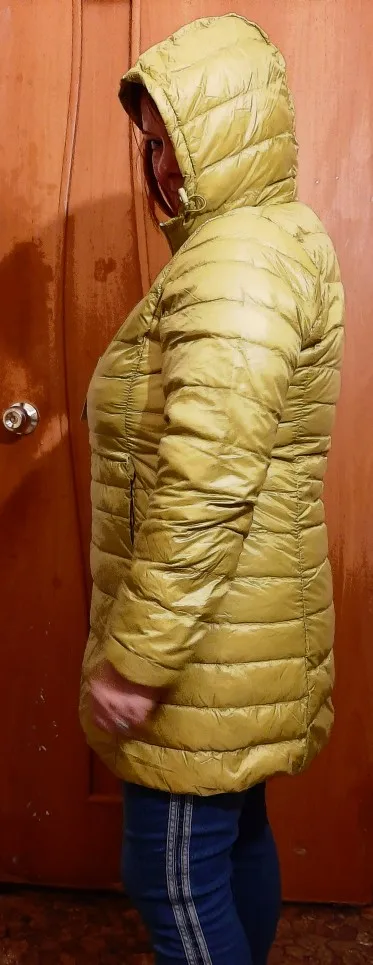 The jacket is good, sewing quality, very light. At its 50 size (100-87-104) bought XXL. It was in the butt, you need to take 3XL, it will sit more comfortably. On the pictures on me one thin turtleneck and this jacket.