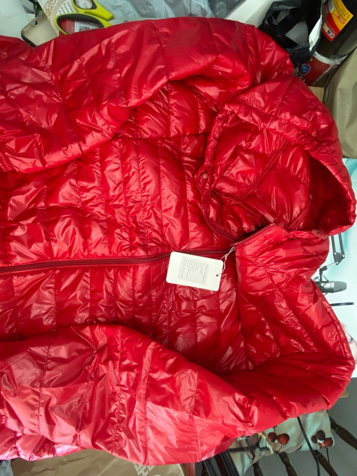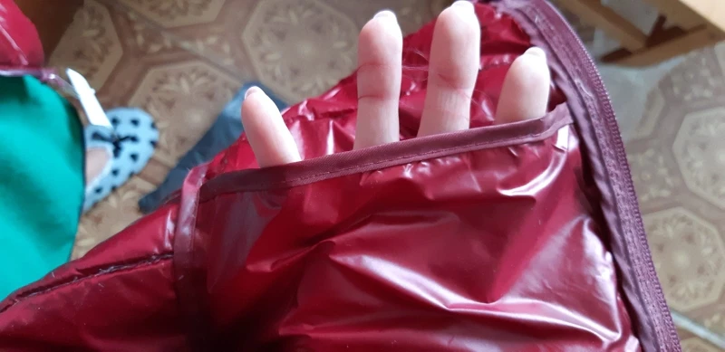 Very satisfied with the fast delivery. I ordered 01.09.2021 and received already 15.09.2021. I ordered my mother for size 50-52 took 4XL. The jacket is really very thin. On a warm autumn. Color burgundy corresponds to the photo on the site. Same bright. All seams are processed. One pocket was smoky. A little in the seams can be seen down. Check in the sock, if that, I'll add a review.