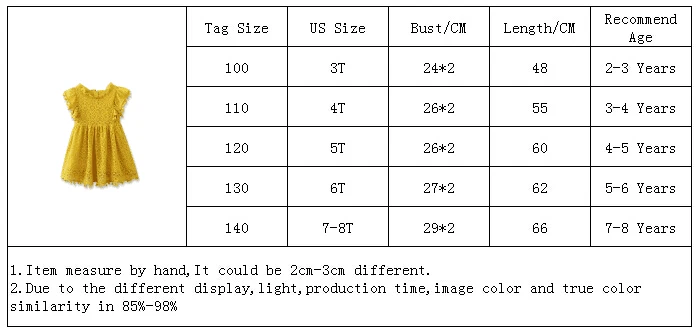 Very beautiful dress, fully match the picture. For the child 7 years old height 130 cm suited size 8.