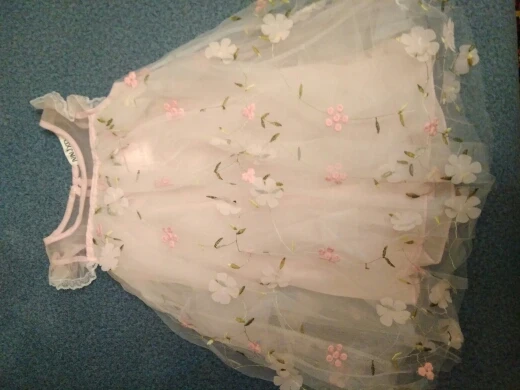 Delivery is fast. The dress is gentle, light, the bottom layer is cotton.