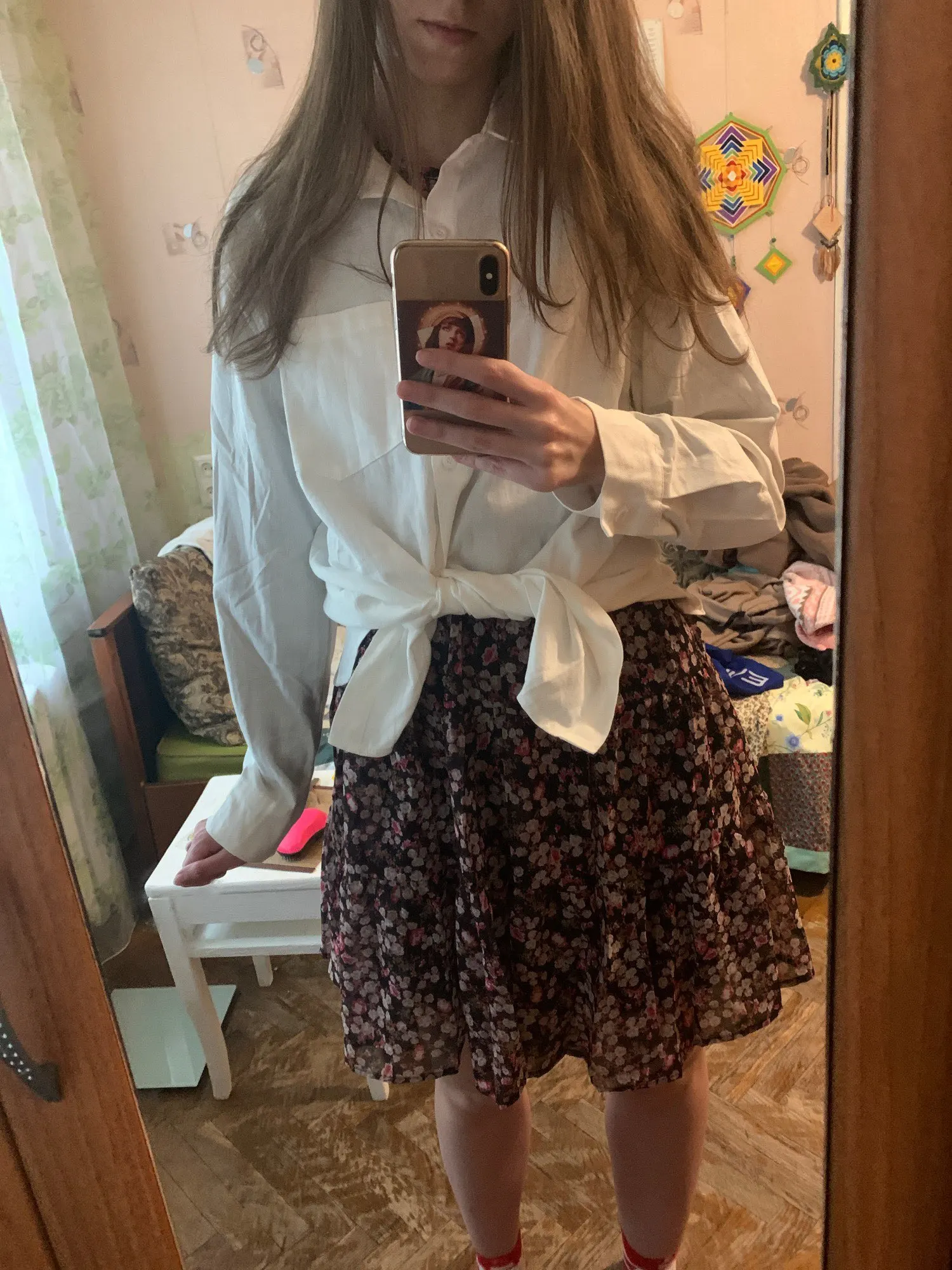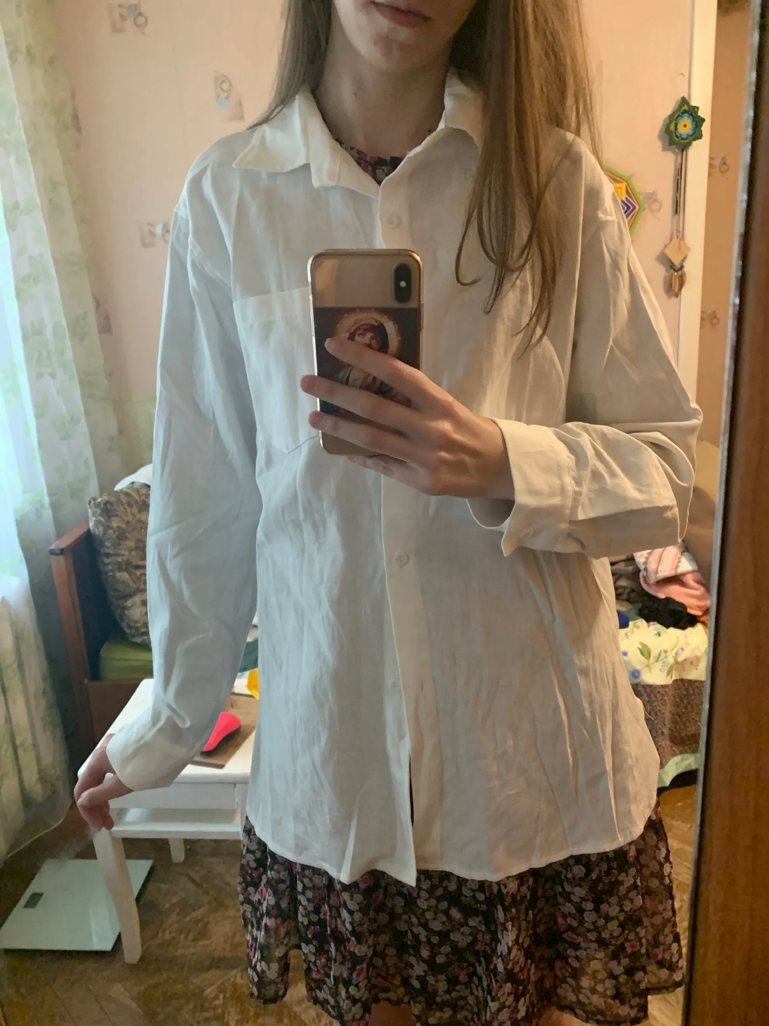 Nice shirt. My parameters: height 175. 80/62/90. I took m because I was worried about the sleeve, but in vain the sleeve is excellent, I think to take the second S already. Crumples (seen in the photo), but the material itself is pleasant to the touch. And the structure is beautiful. The smell is there, it is necessary to rinse. But this is cotton, let's see how after washing will behave.