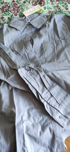 Excellent shirt, for the summer in general Super. It feels like linen. The fabric is very dense, keeps the shape. All seams are well stitched. 5/5.