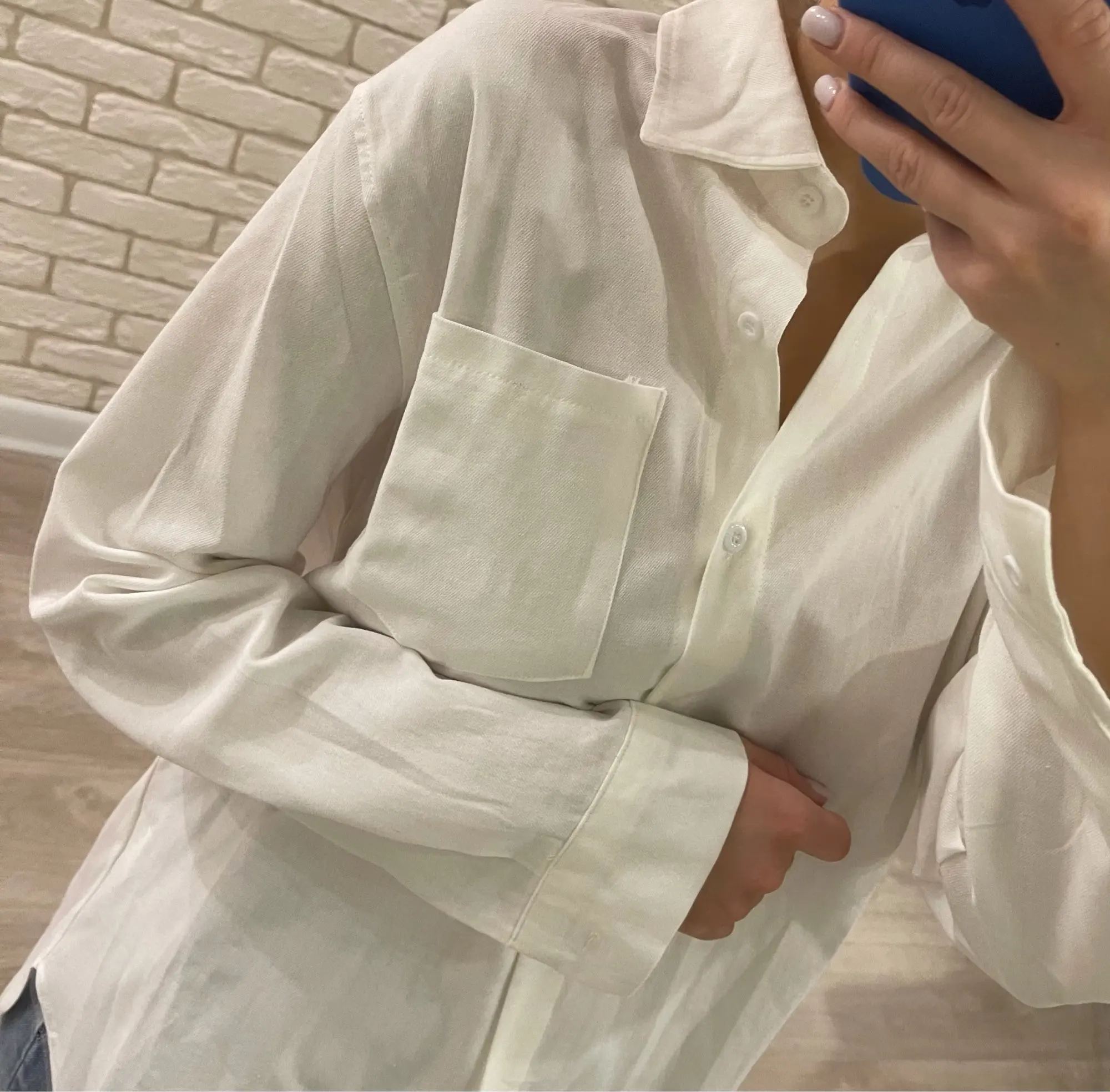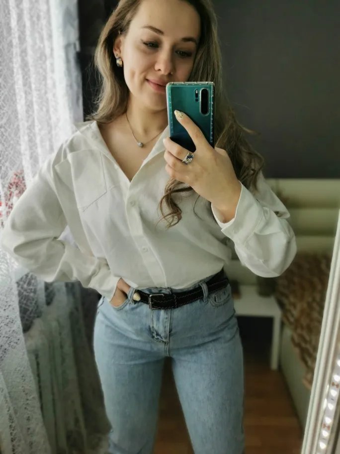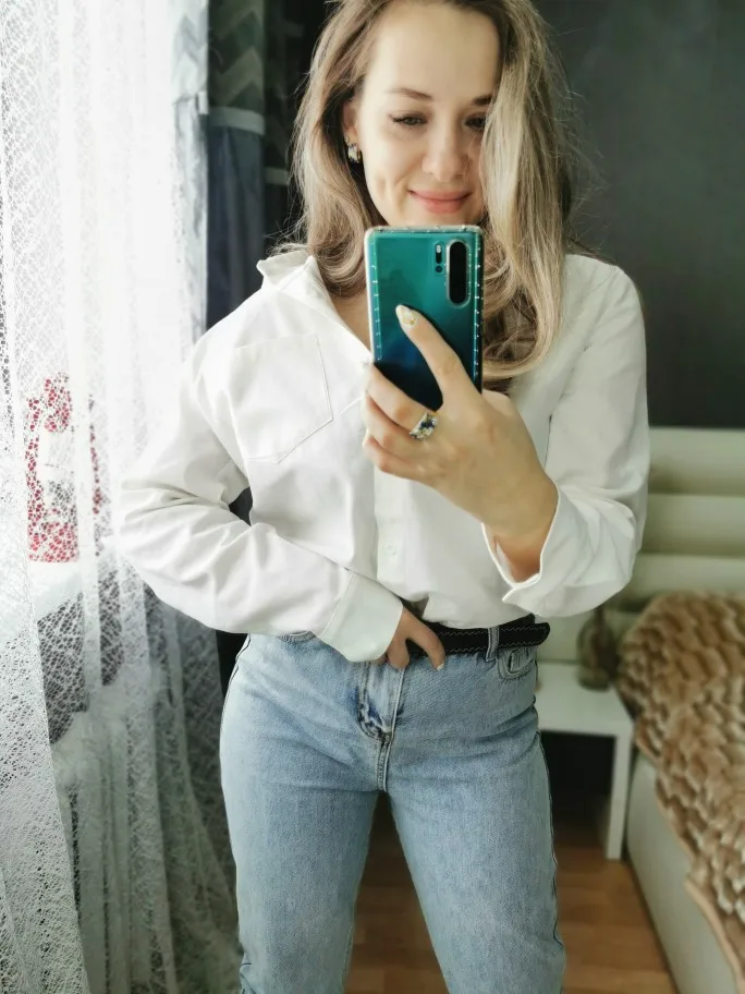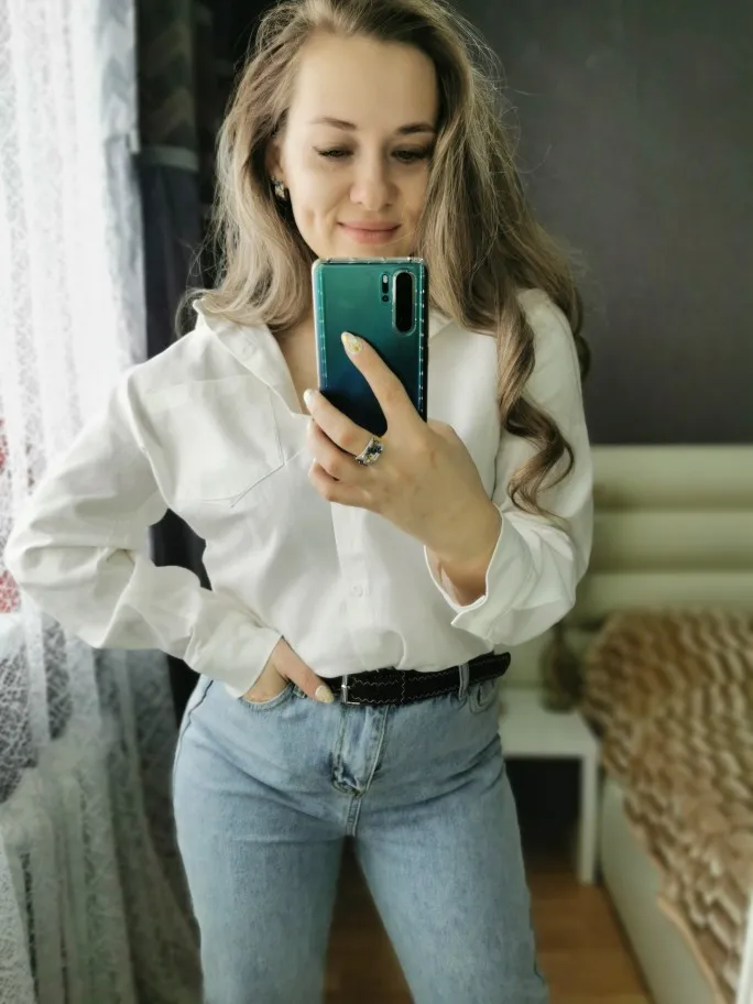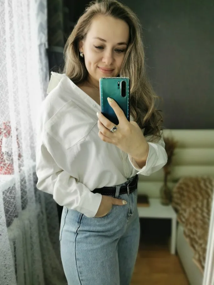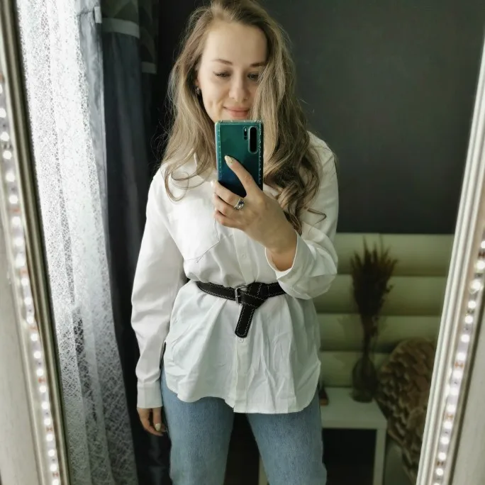No words, some positive emotions. Chic shirt, cotton.
