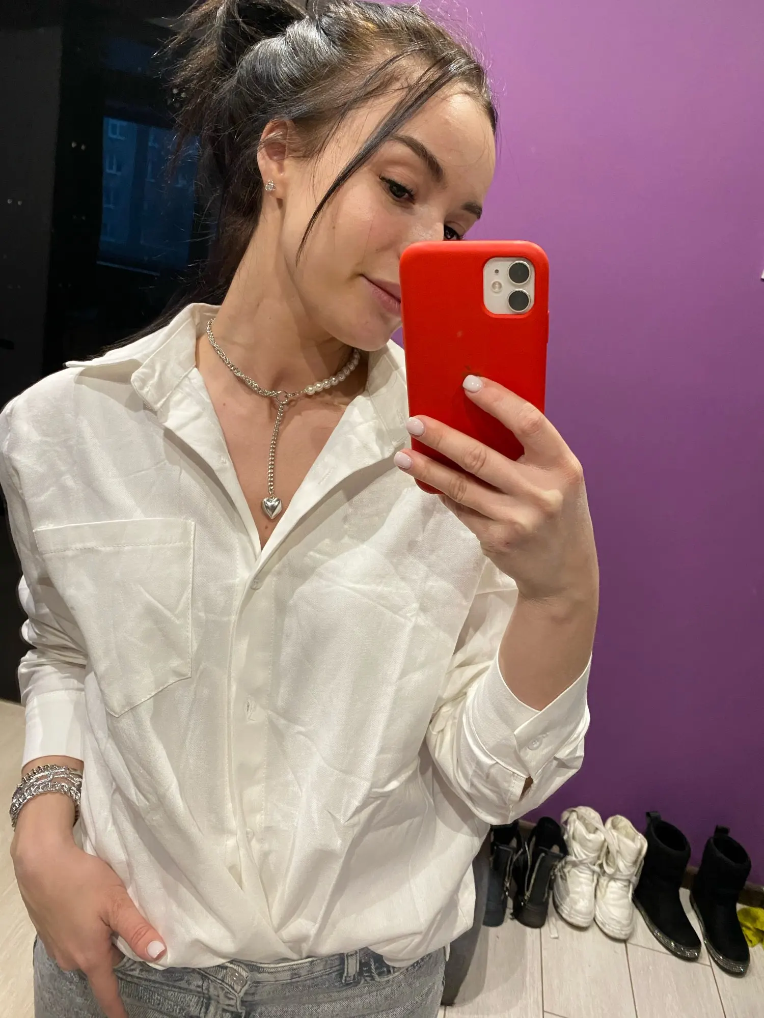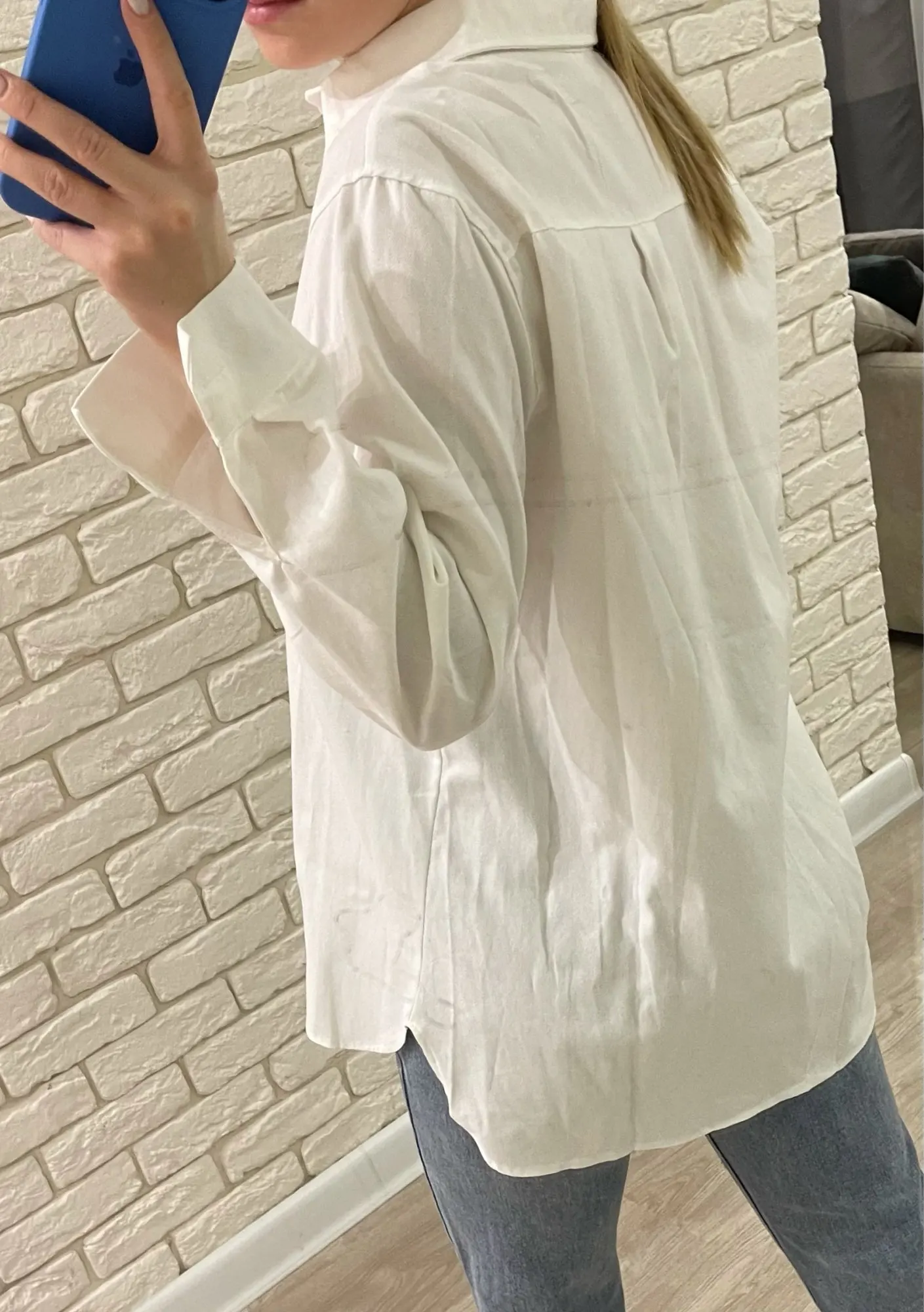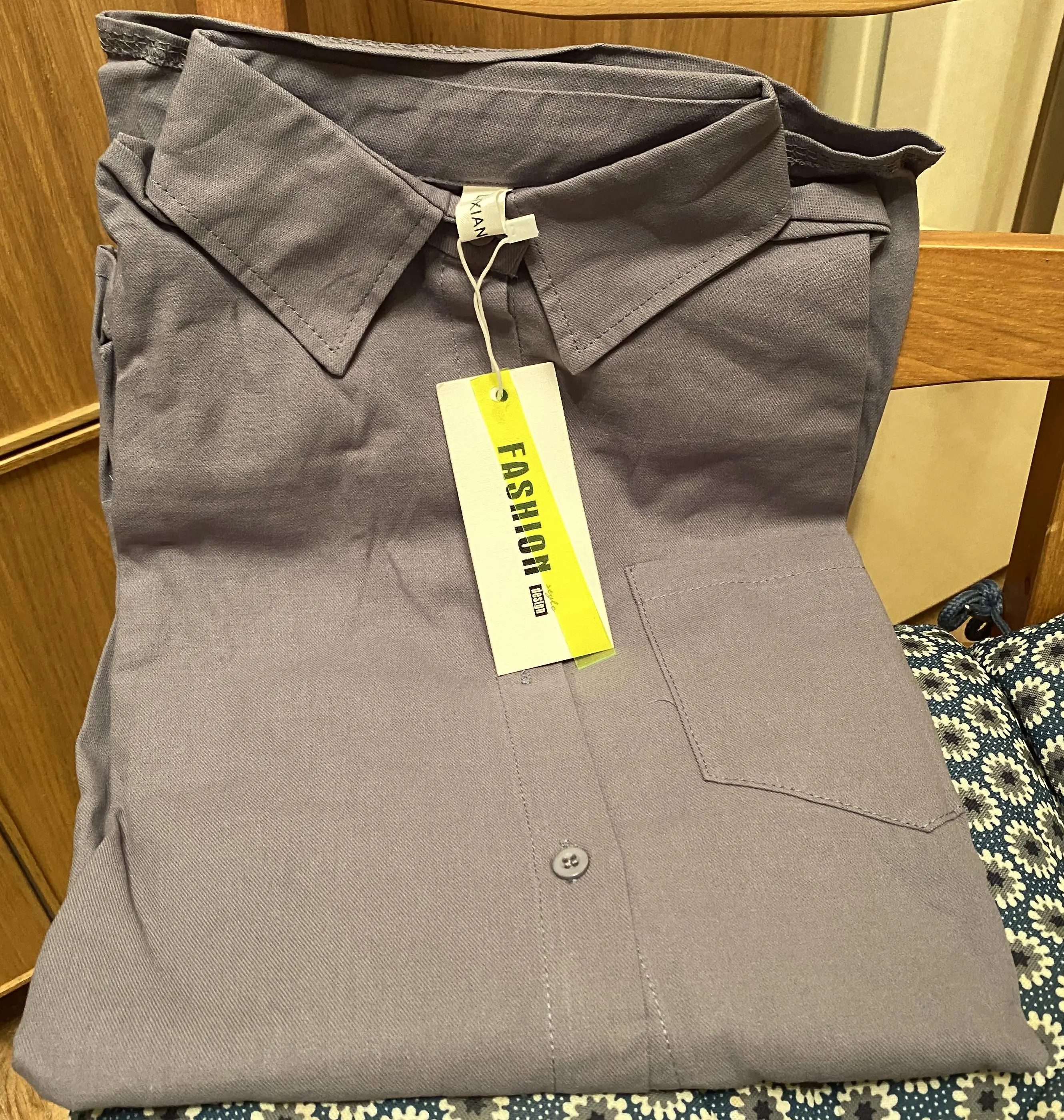 No words, some positive emotions. Chic shirt, cotton.