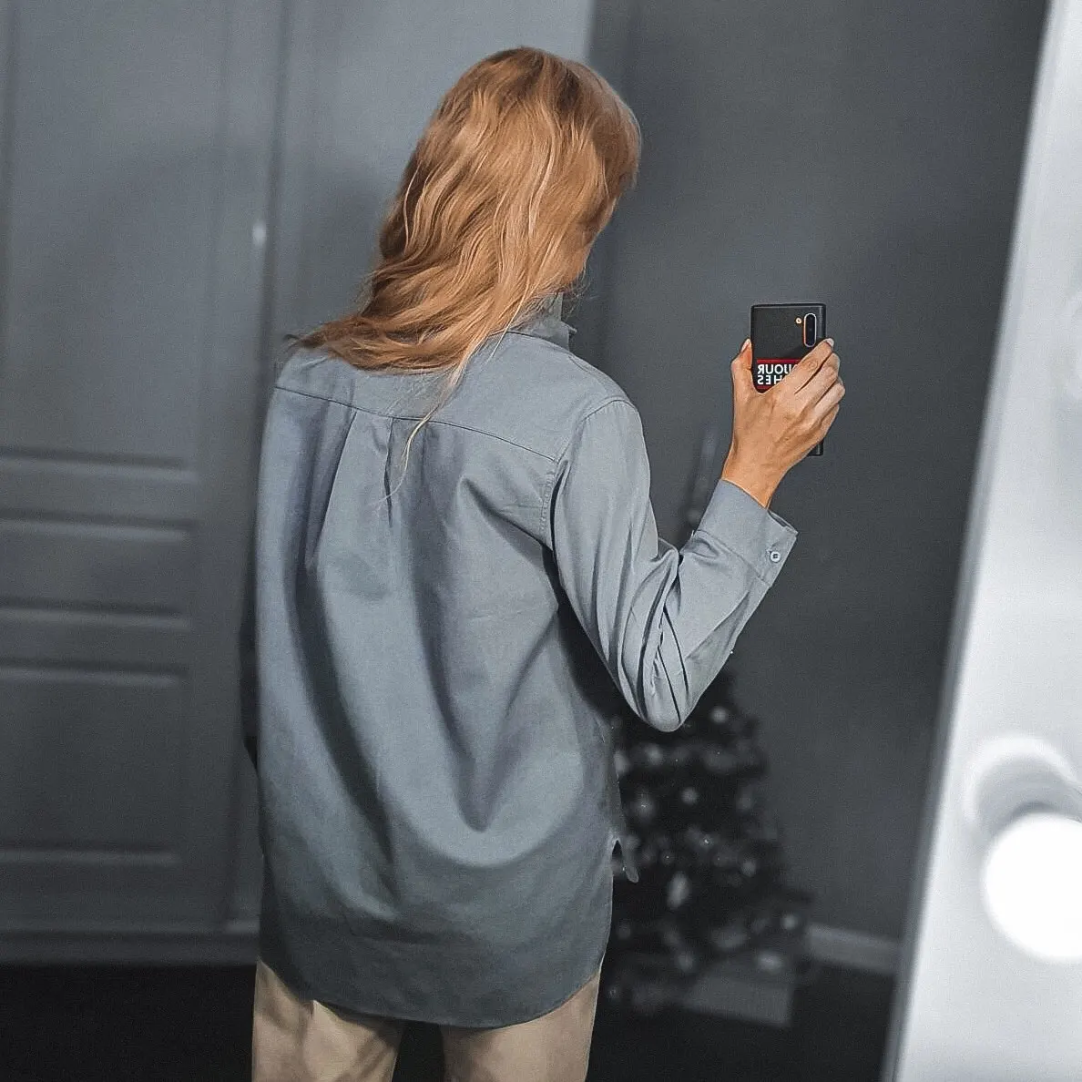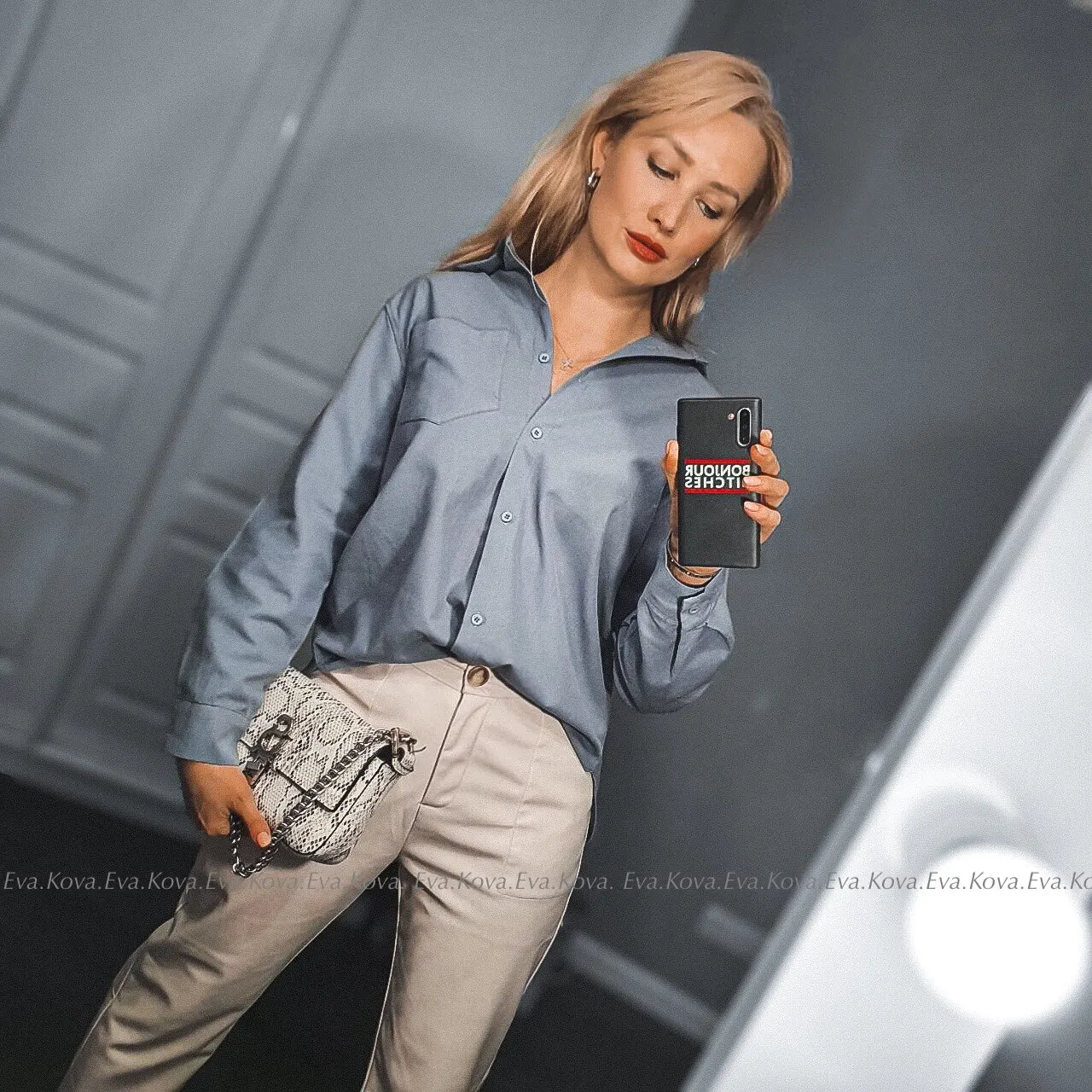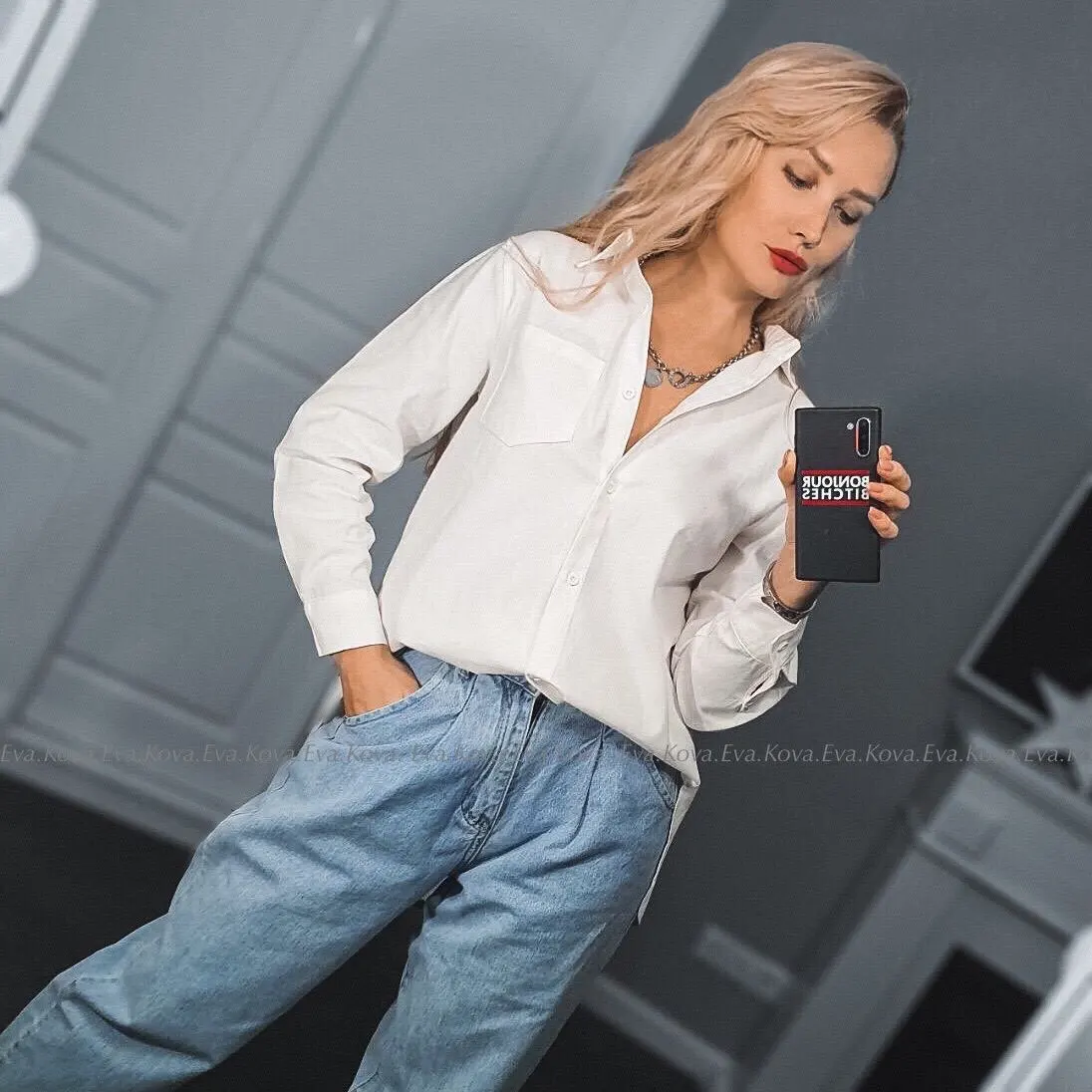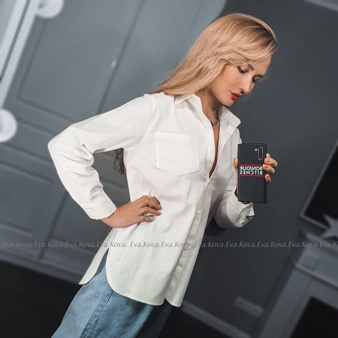 No words, some positive emotions. Chic shirt, cotton.