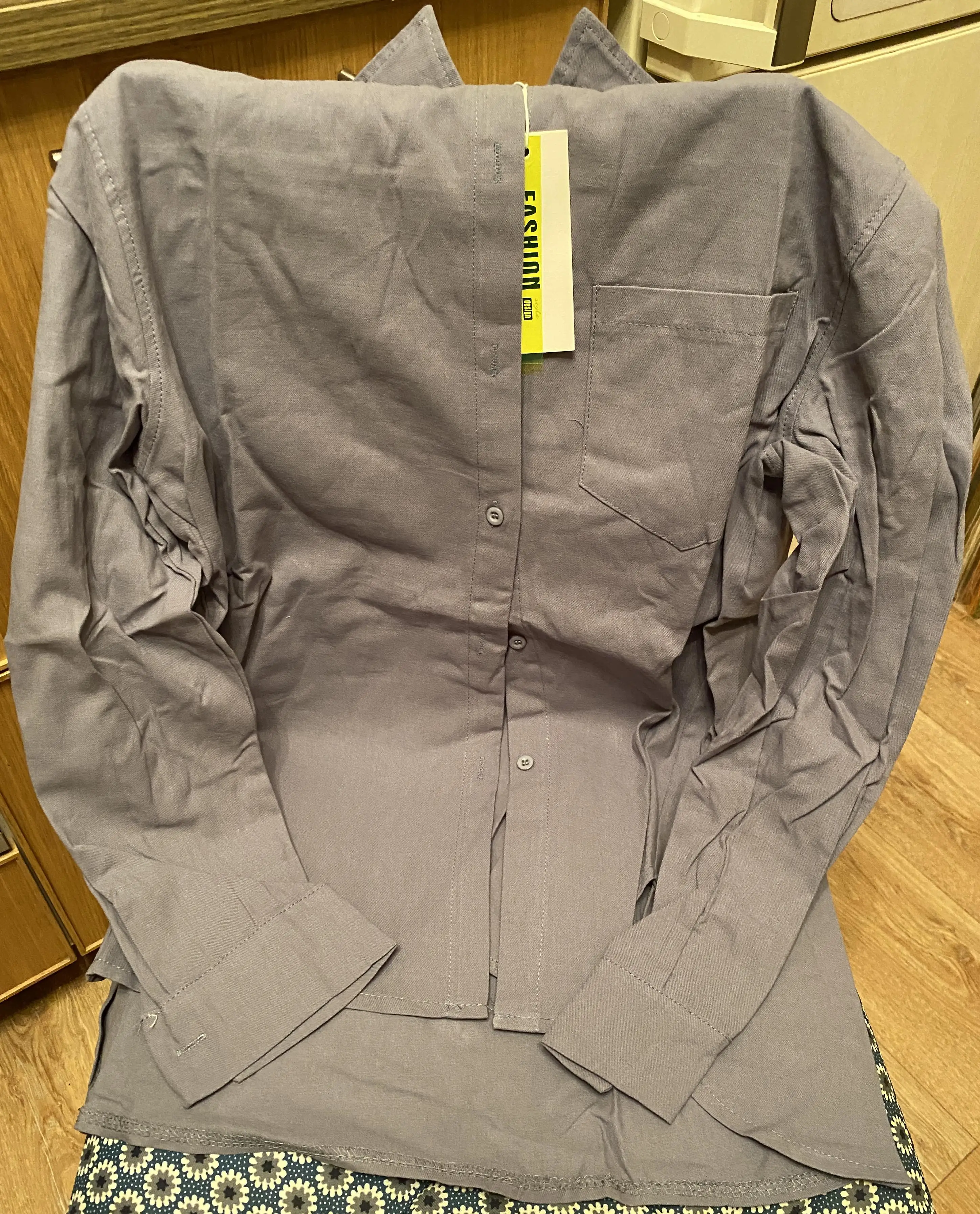 This shirt is in both white and gray-blue. Delivery about a month. The shirt is straight, free cut, fastened to buttons, on the chest pocket. The fabric is a little rough texture, the composition is exactly dominated by cotton, dense (winter/spring/autumn). Ordered in size m. On my height of a sleeve of good length, but, the pocket is slightly higher than it should. She sat down on me well, but not very oversaz. My parameters: height 175, shoulders 38, og92 .. Measures things: shoulders 43, sleeves 57, width 50, front length 67, length behind 75. Sewing neat, but, inside and outside was a little sticking threads. I recommend a shirt.