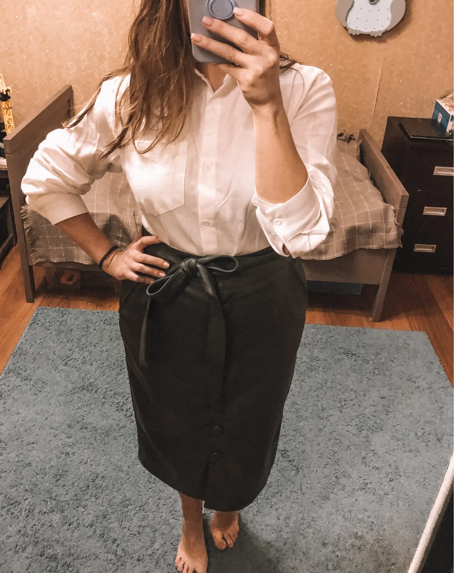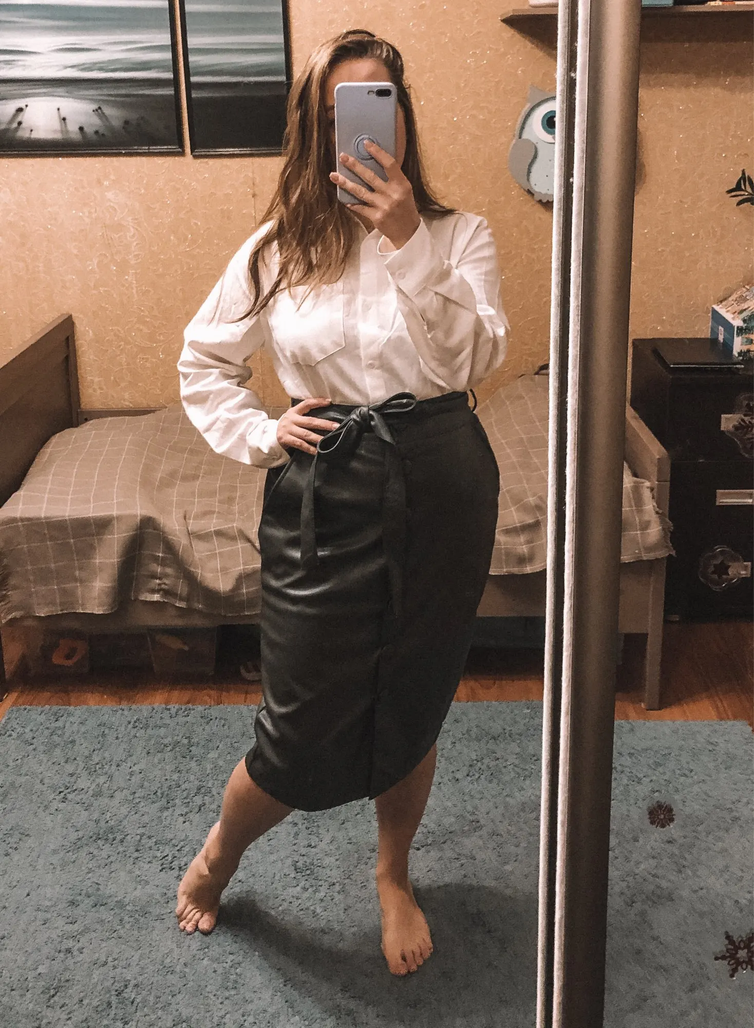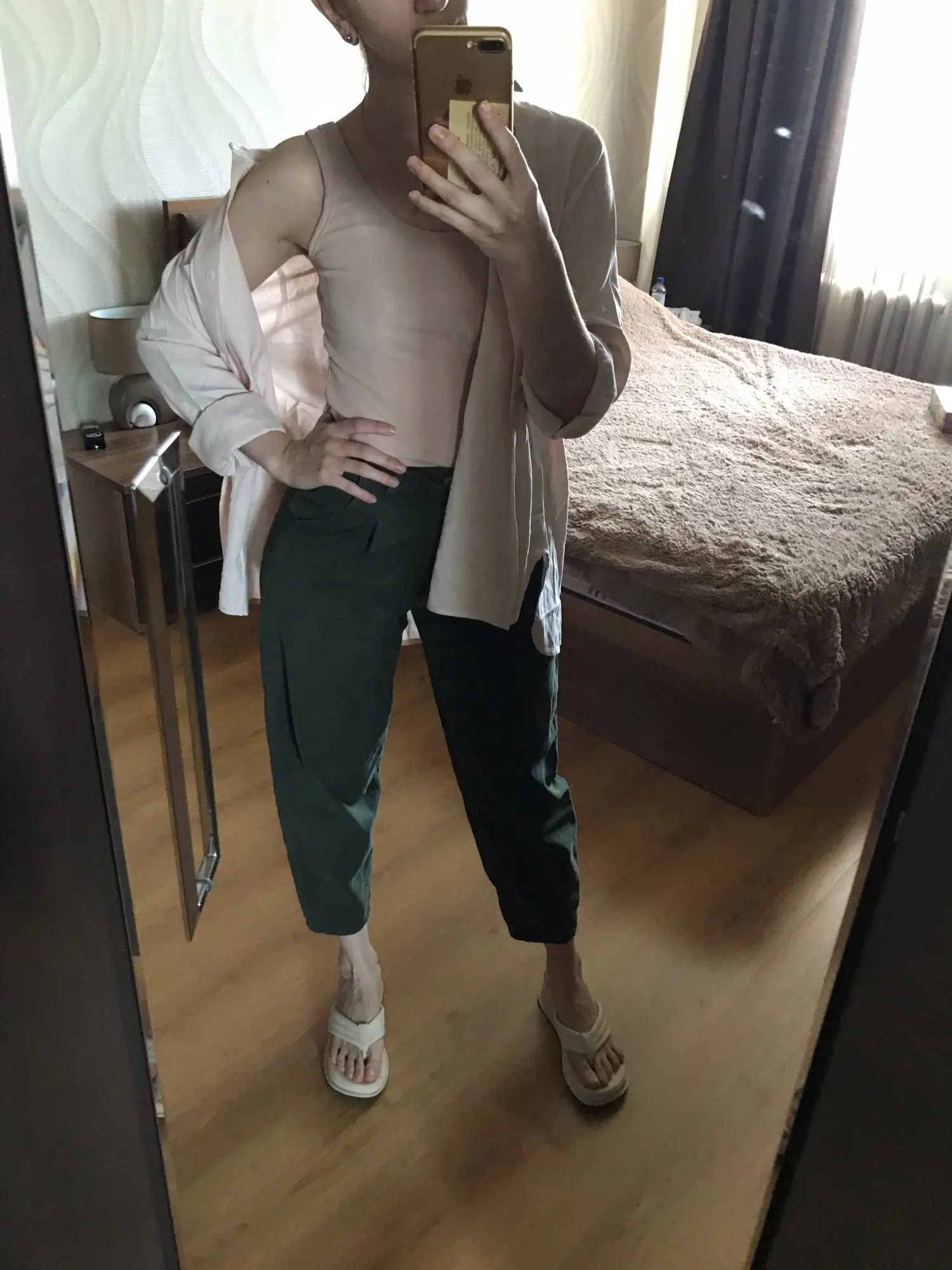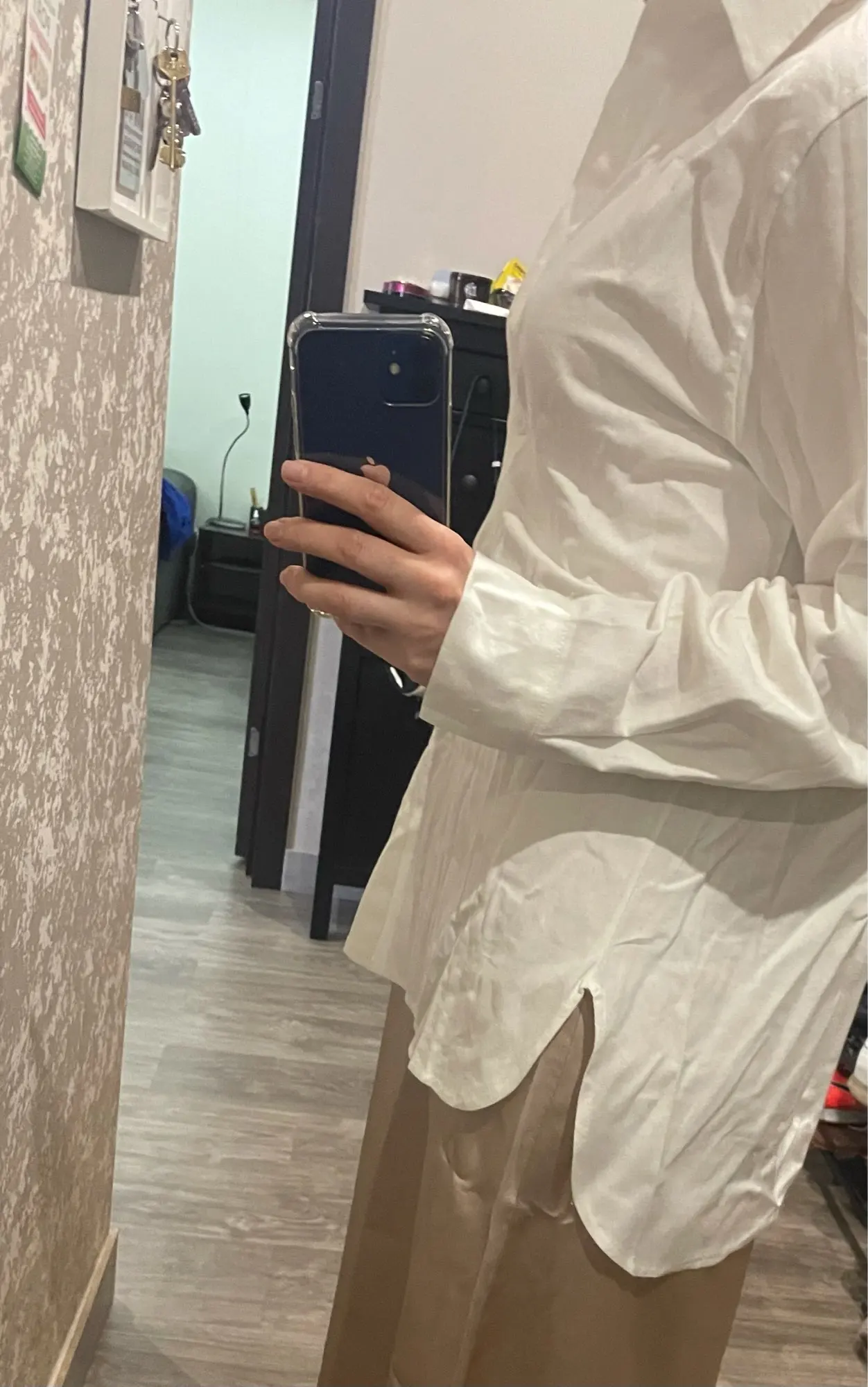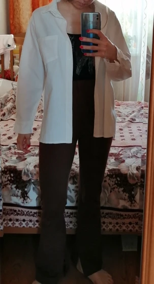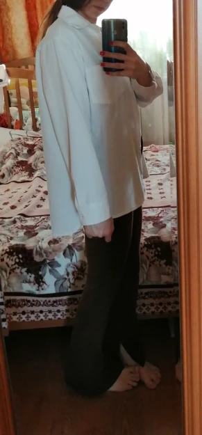 Классная легкая рубашка! На свои параметры 89-67-96 рост 167 брала М и по размеру подошла идеально!