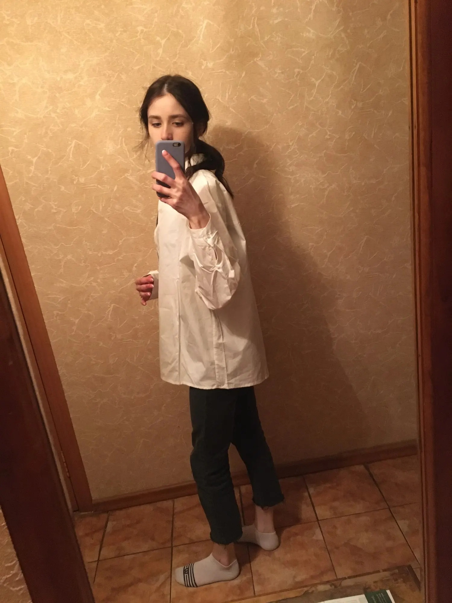 A good tight shirt, threads stick out but not at all critical. On my parameters OG 86/ot67/ob91 height 163 size S village is excellent, there is a light oversize, for the office and everyday what you need. With the store did not communicate, sent immediately, the shirt came with other goods in one parcel, which is convenient! Thank you)