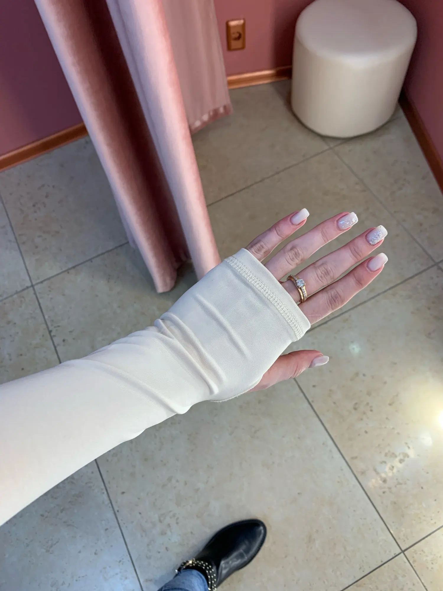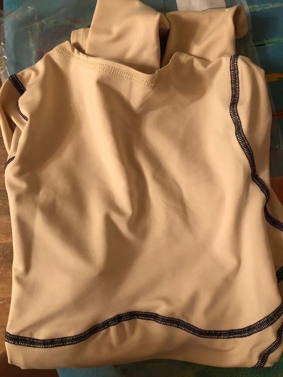 The fabric is soft, pleasant to the body. It's not hot in it. My height is 165, weight is 55 kg, the size is excellent. The seams are even, the threads stick out a little, but it's not scary, you can trim neatly. Delivered in Tuapse for about a month.