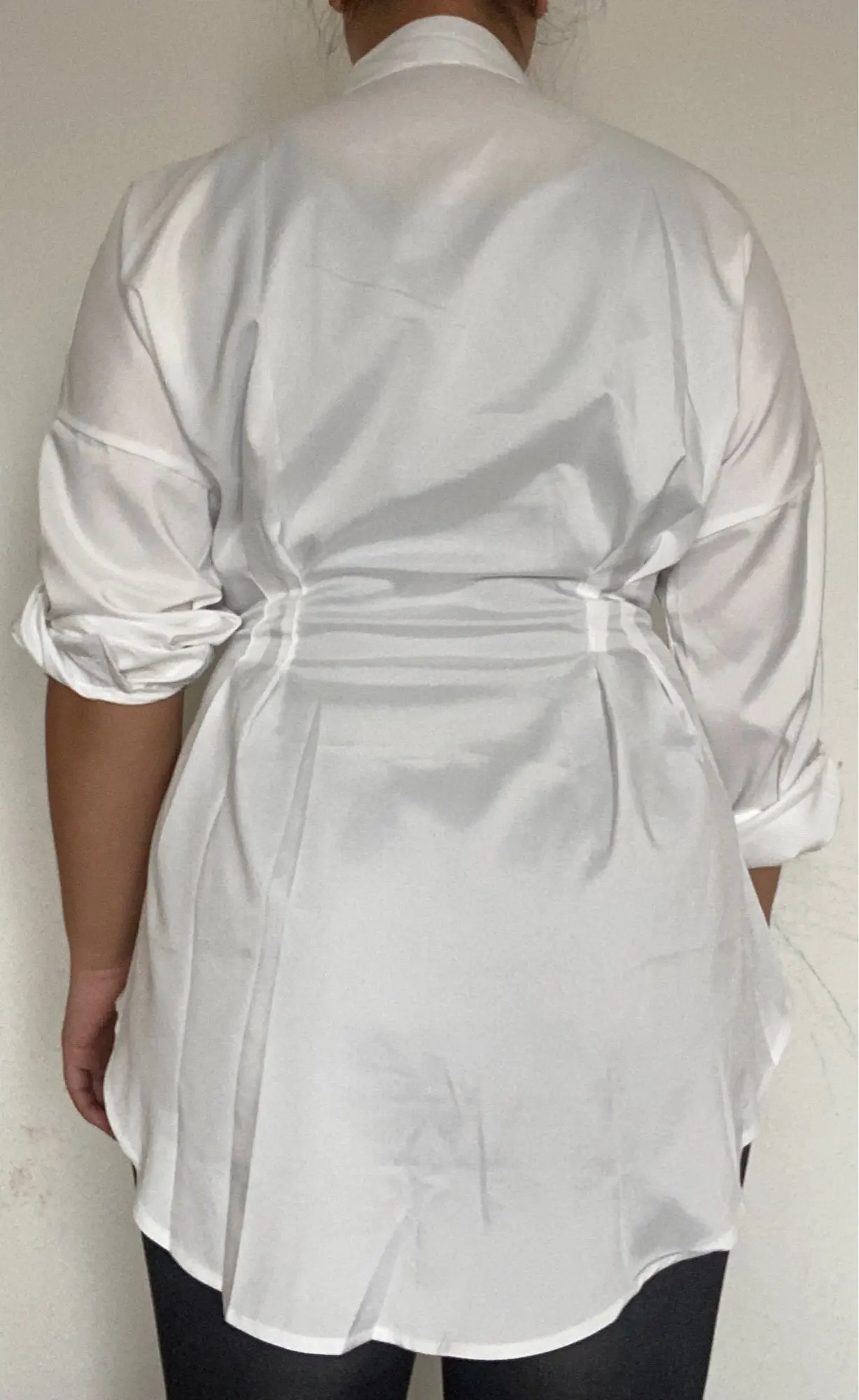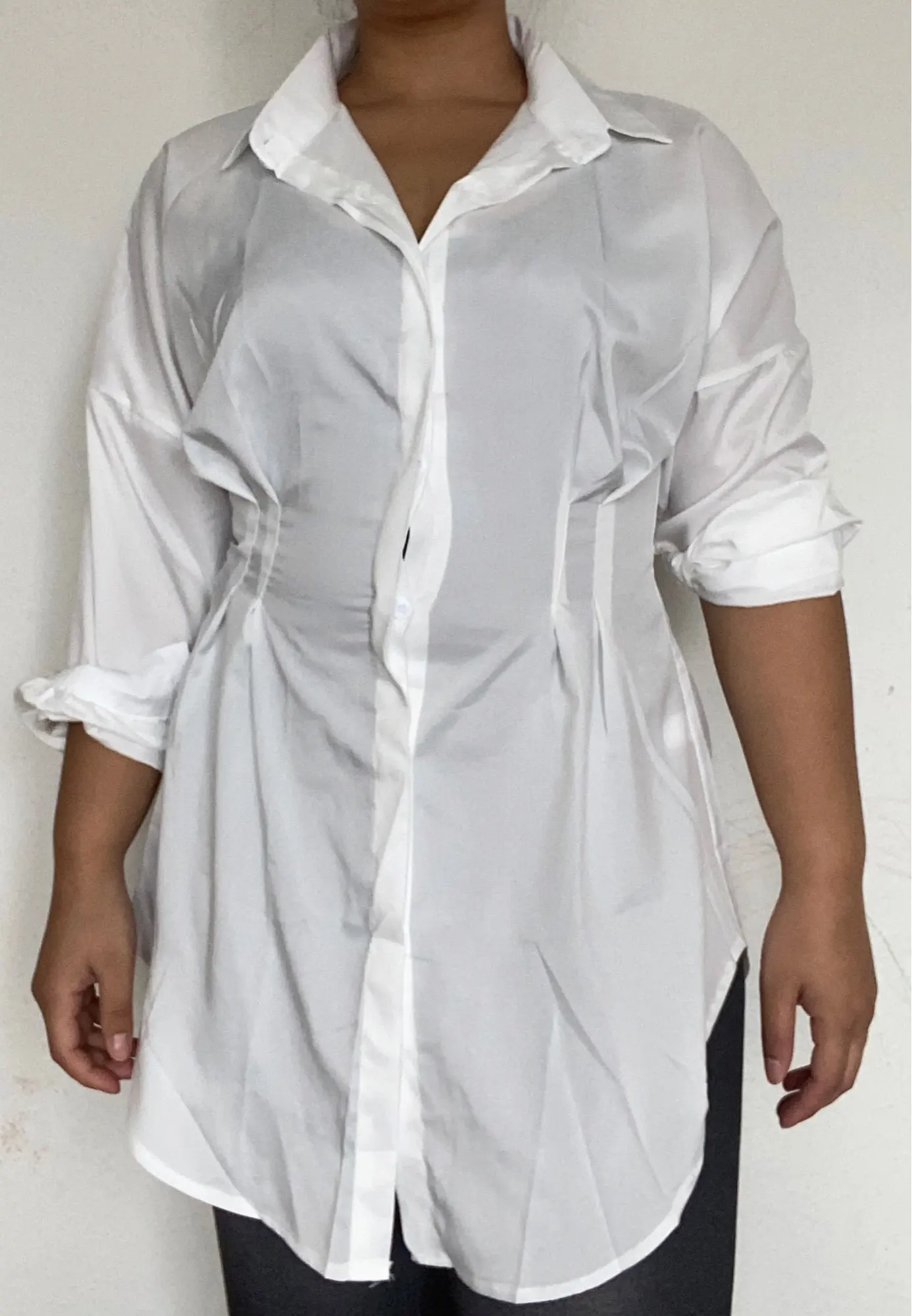 Unique Long Sleeve Mini Shirt Dress with a  Button V Neck and clinched waist style is a cute little outfit for a party, birthday, or any occasion.