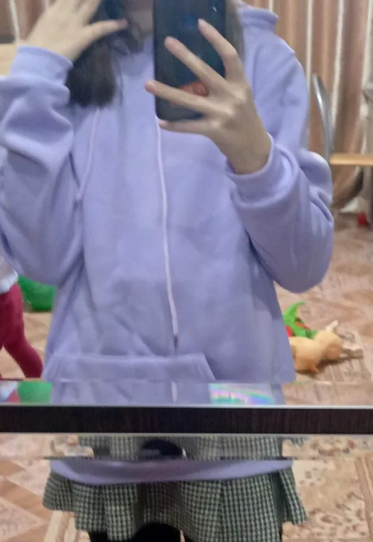 The goods came relatively quickly, everything is cool, at a height of 158, took S. But the hoodie will be a little thinner than you think.