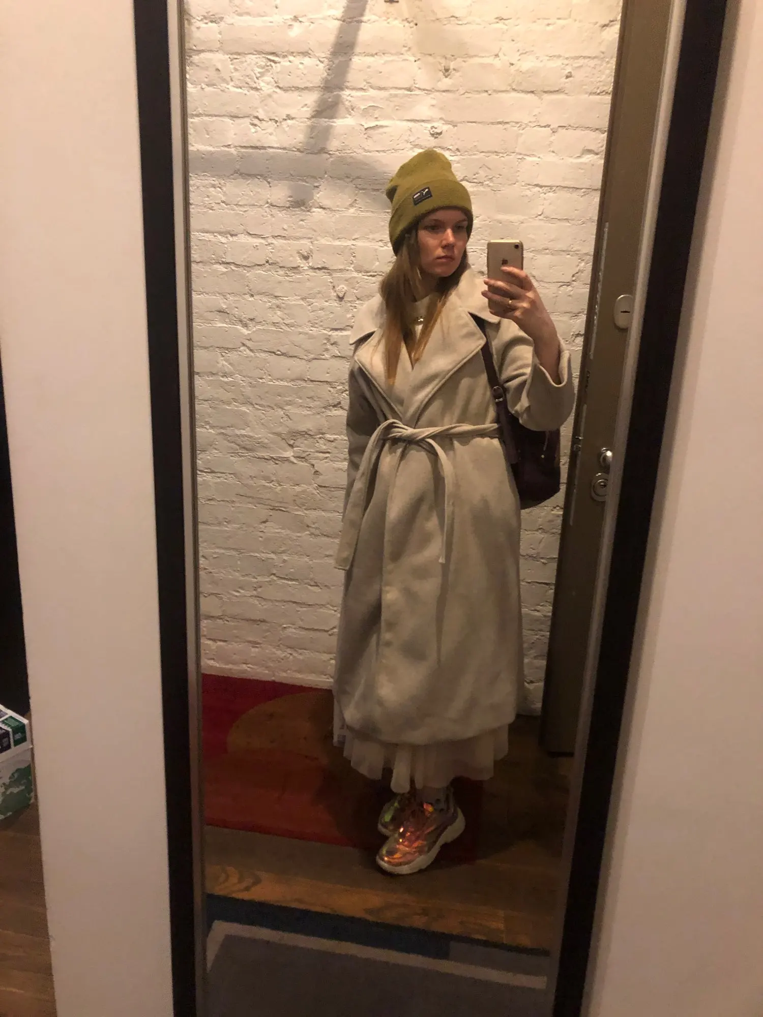 The coat is beautiful! Fell in love with him, waited very much when you can dress. Sleeves are really short, but they approached me straight, my handles are short))) finally I can wear dresses in the autumn-the old one was too short.